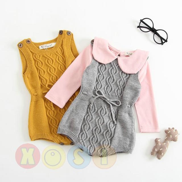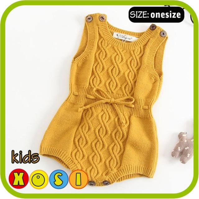 ベビーロンパース サロベット 腰占めるタイプ オールインワン ニット 簡単 春秋 ベビーオールインワン ベビー服 子供服 女の子 可愛い シンプル 三つ編みの柄