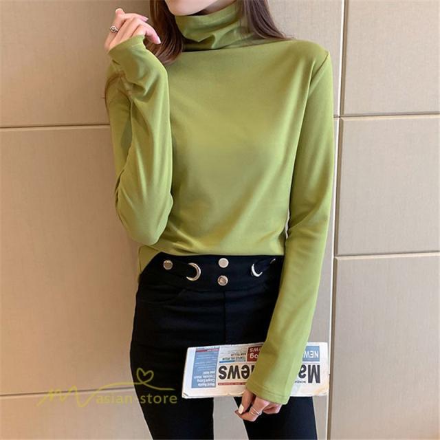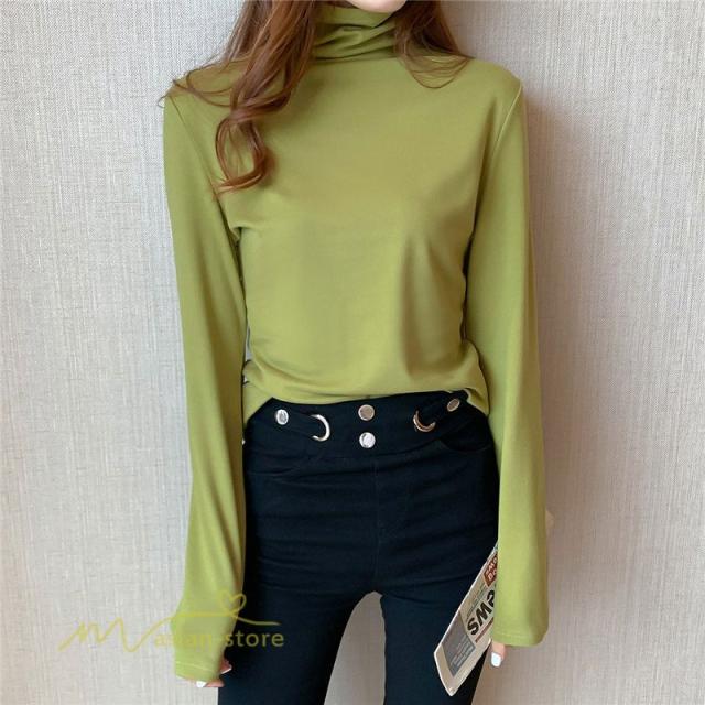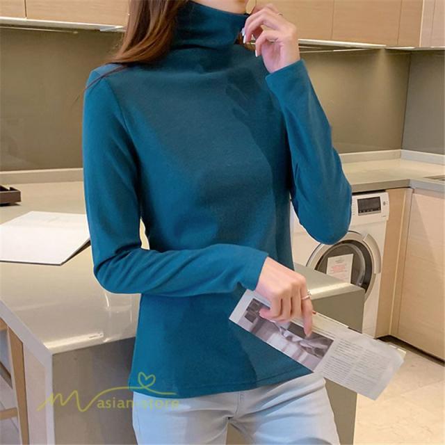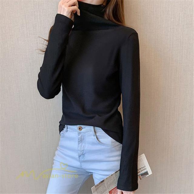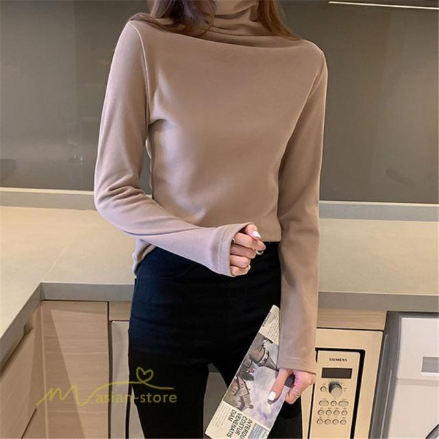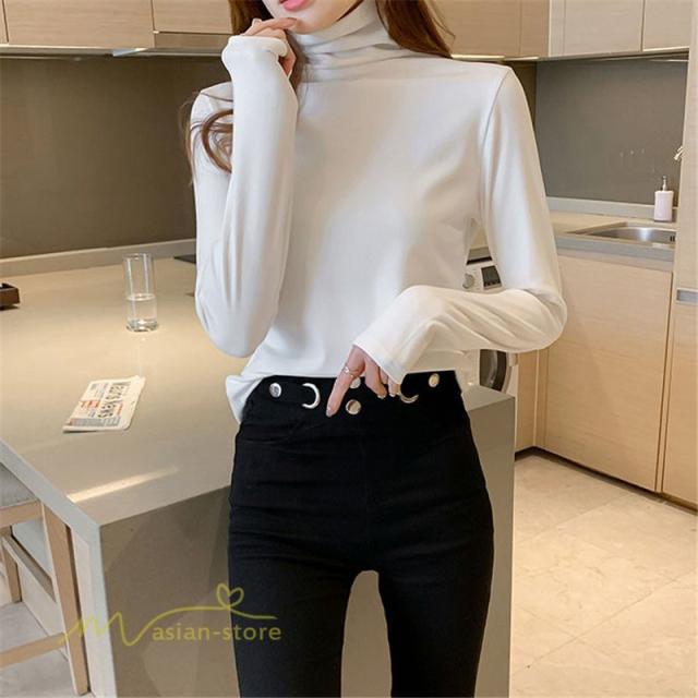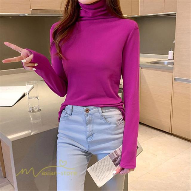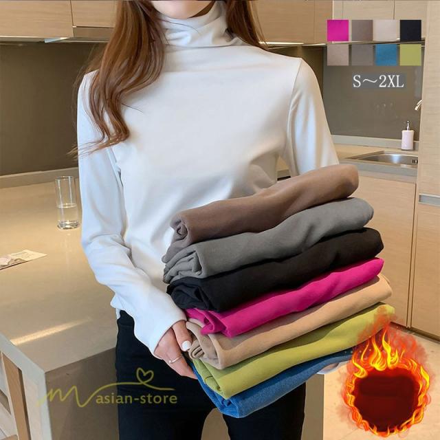 裏起毛 カットソー Tシャツ レディース 長袖 秋 春 プルオーバー スリムTシャツ カジュアル カシュクール アウター 韓国ファッション タートルネック 2020 無地
