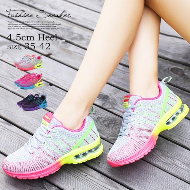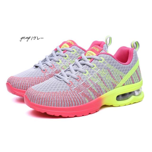 配色 エアークッション レースアップ スニーカー 靴 レディース スニーカー ローカット パステルカラー ビビッドカラー ポップ 厚底 ボリュームソール aw