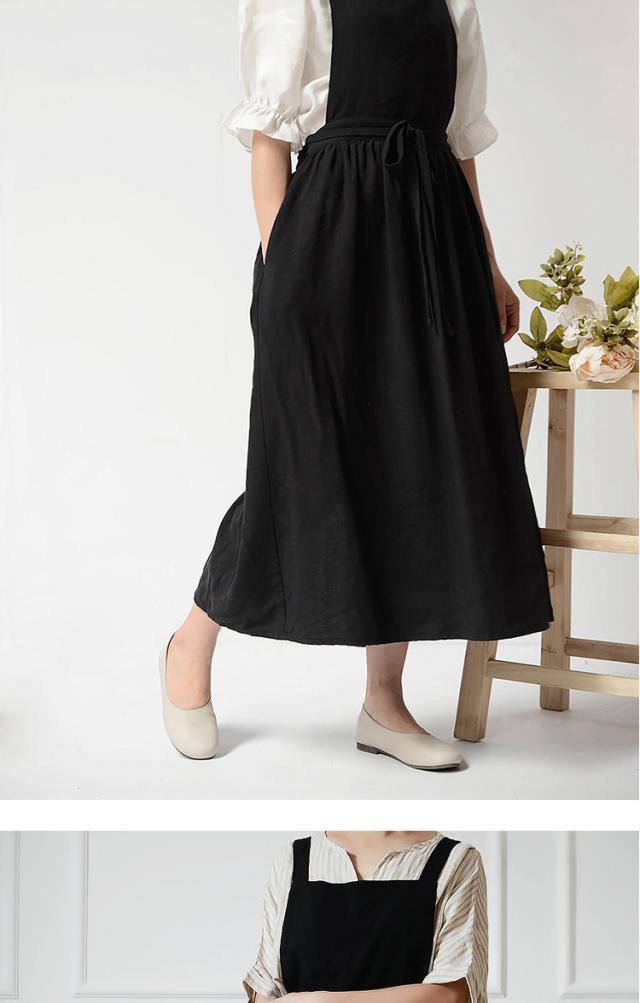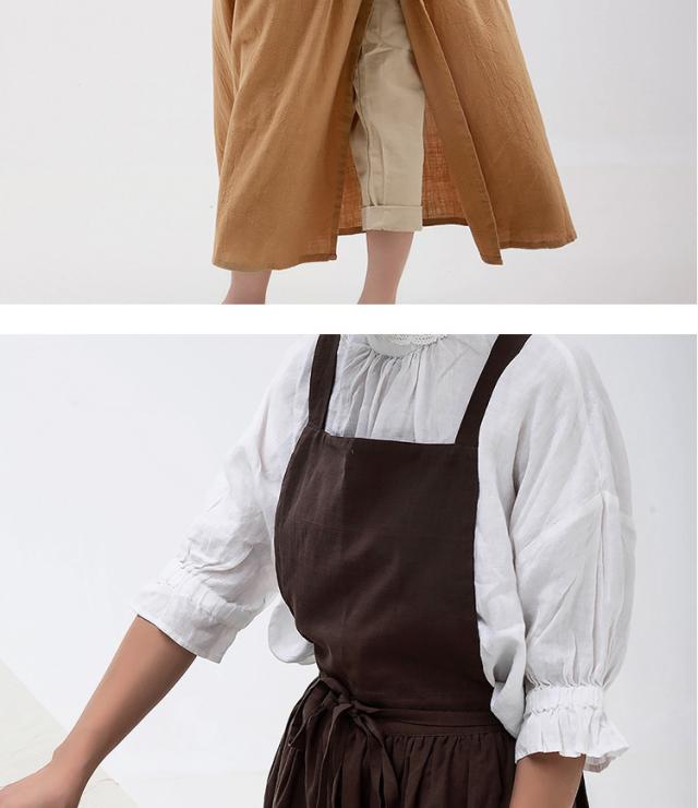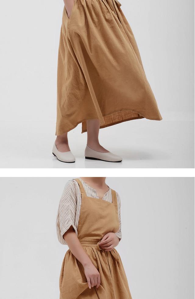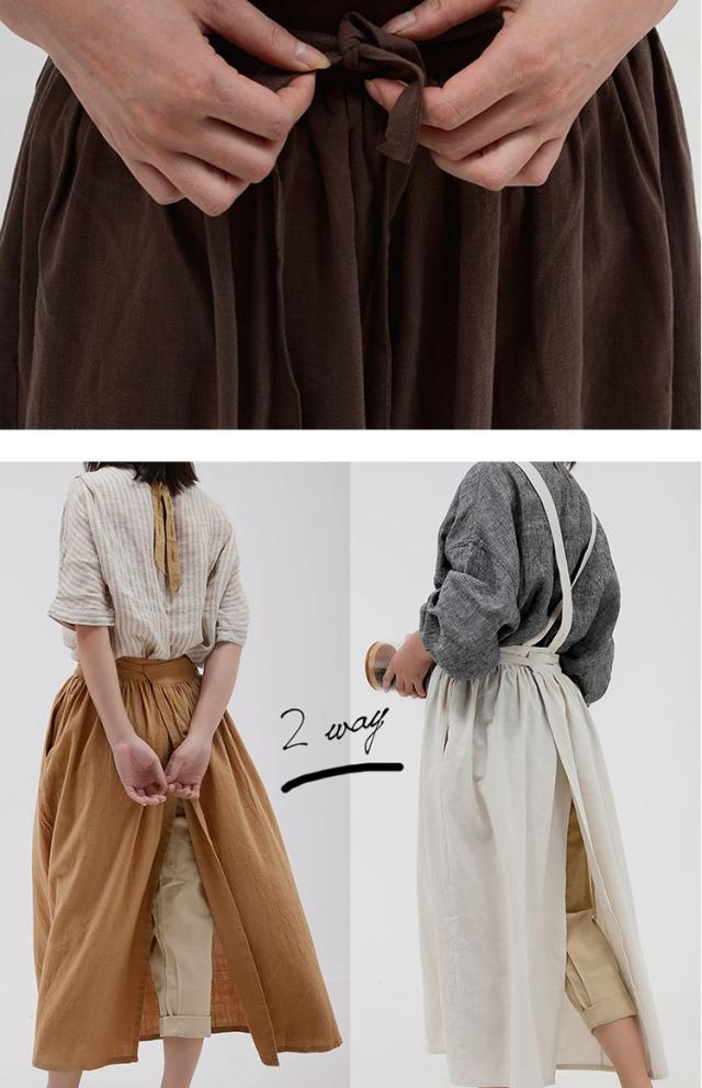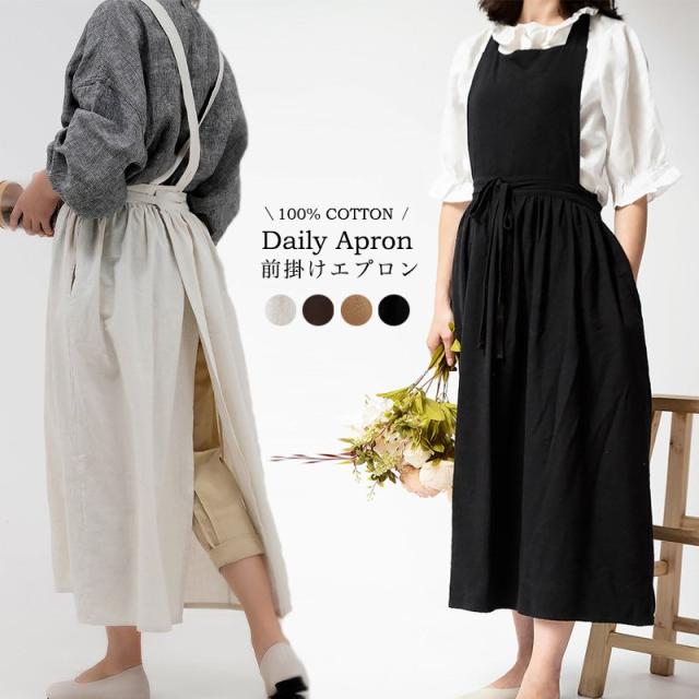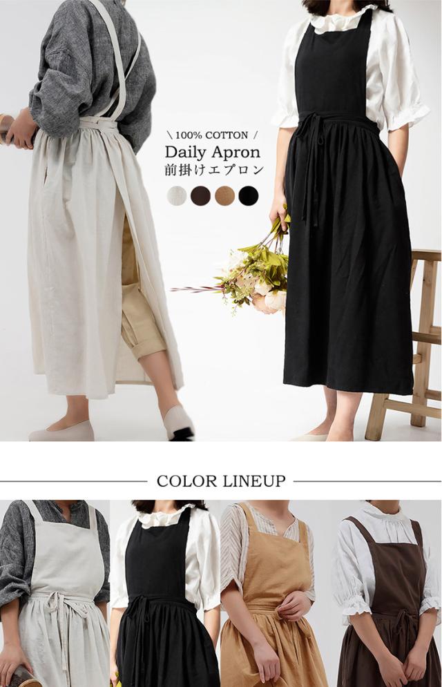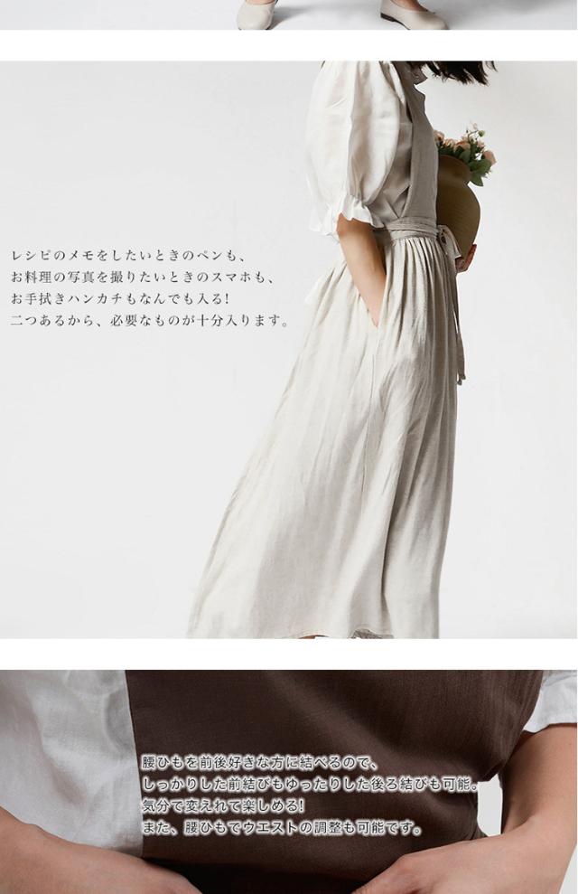 エプロン チュニックエプロン おしゃれ かわいい シンプル カフェエプロン 北欧風 ワンピース ナチュラル アースカラー かぶり ロング 大きいサイズ ポケット