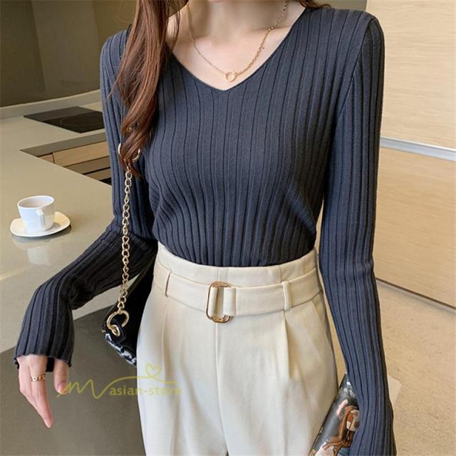 ニット レディース トップス 秋冬 セーター Vネック カシュクール プルオーバー カットソー 長袖 ニットウェア 着やすい カジュアル 韓国ファッション 2020作