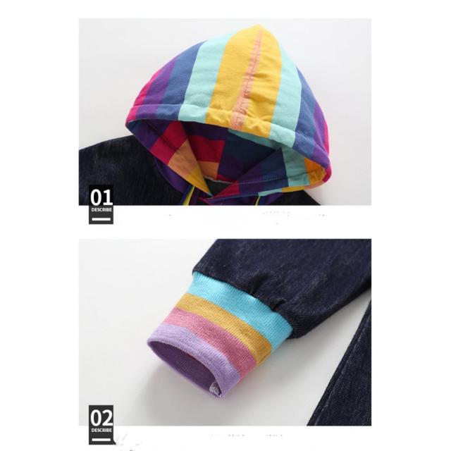 子供服 ワンピース キッズ 秋服 デニムワンピース カジュアル 無地 長袖 フード付き 普段着 通学 通園 韓国子供服 女の子 ワンピース 膝丈 女児用 大人气