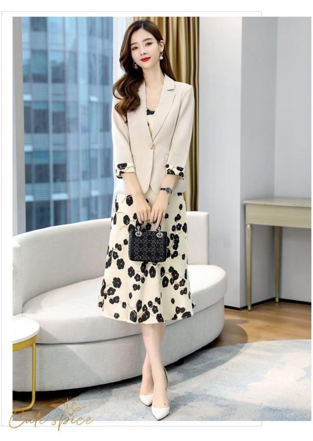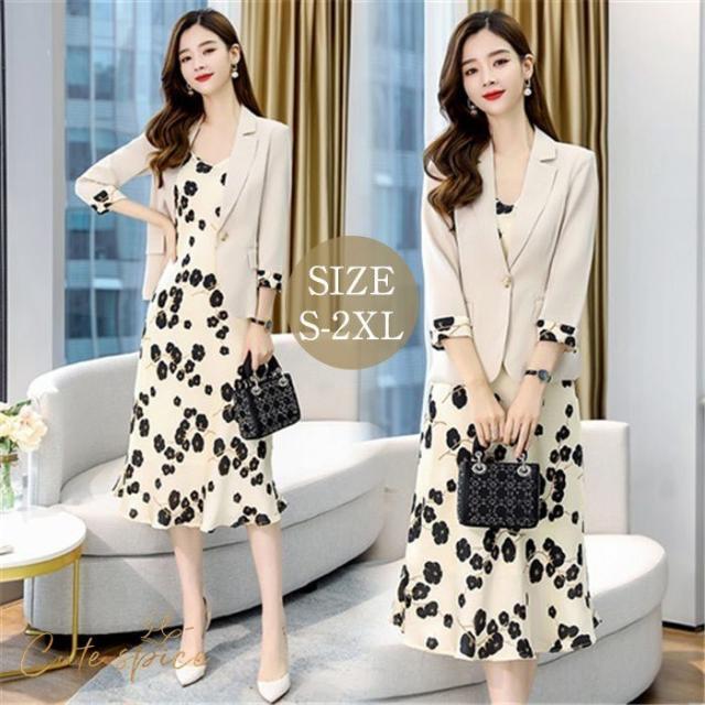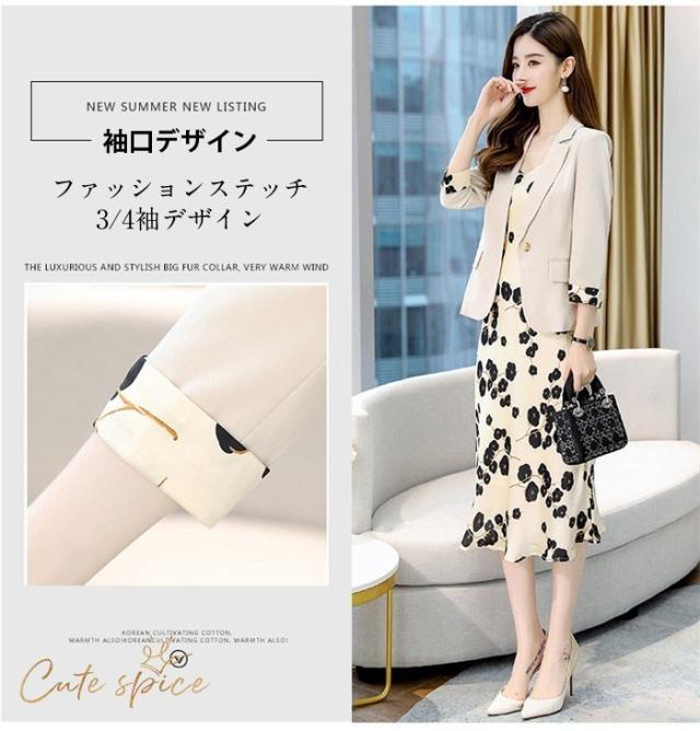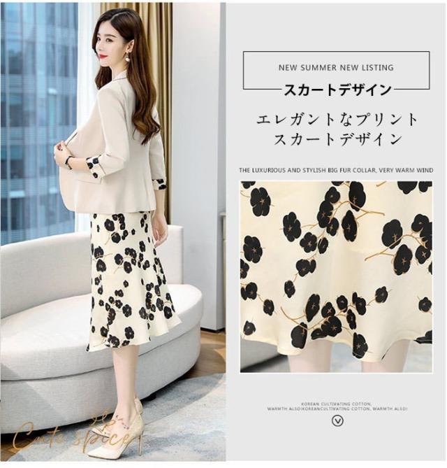セットアップ レディース サスペンダースカート 花柄 ロング フリル スカート ジャケット 着痩せ 七分袖 エレガント セレモニー 結婚式 通勤 ママ 40代 秋