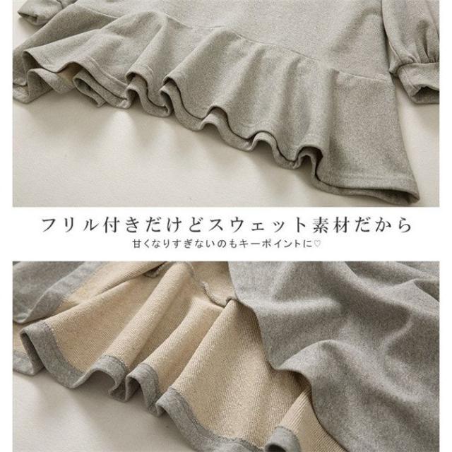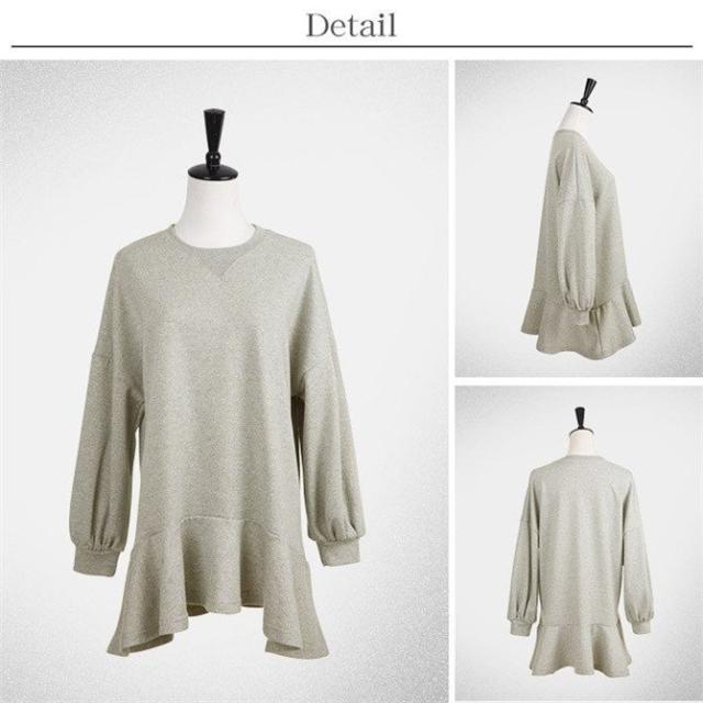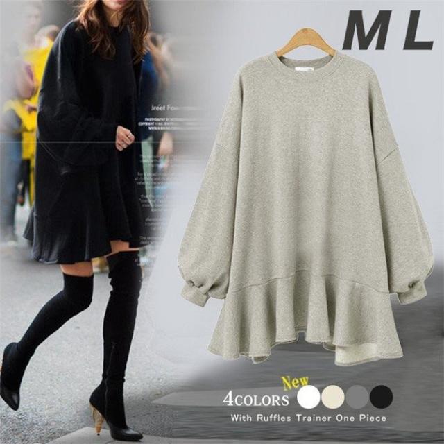 パーカー風 フリルワンピース フリルプルオーバースウェット ゆったり バルーン袖 ワンピース トレーナーワンピース フリル付き レディース