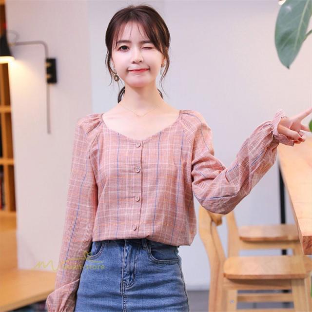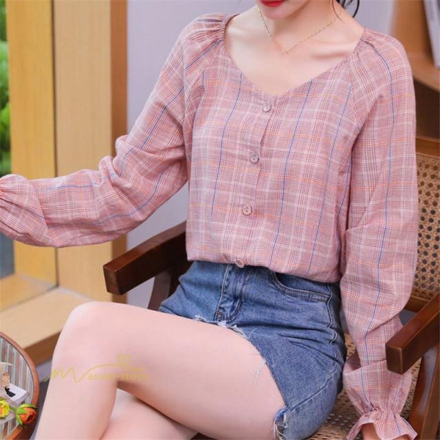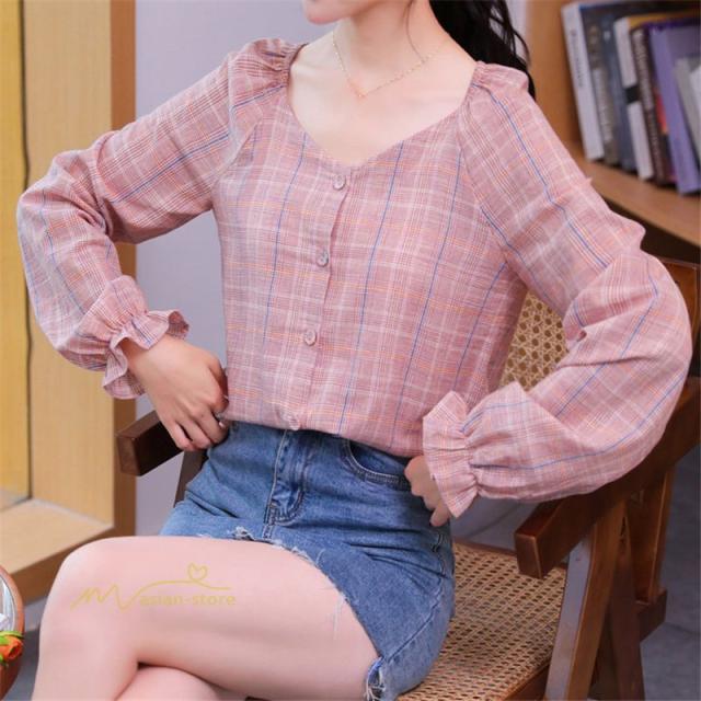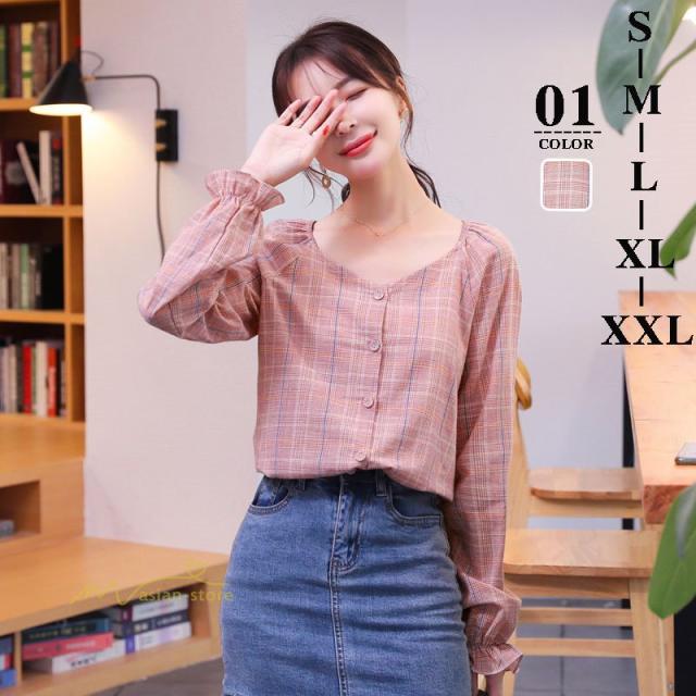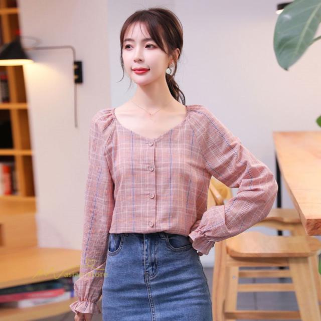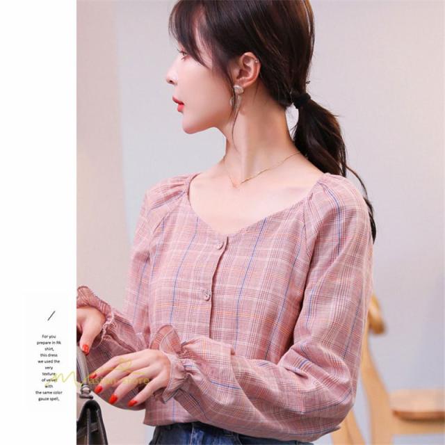 ブラウス シフォン レディース チェック柄 長袖 薄手ブラウス トップス ガーリー 韓国風 ファッション 通勤 着痩せ シンプル 秋コーデ 気質 お出かけ 2020新作