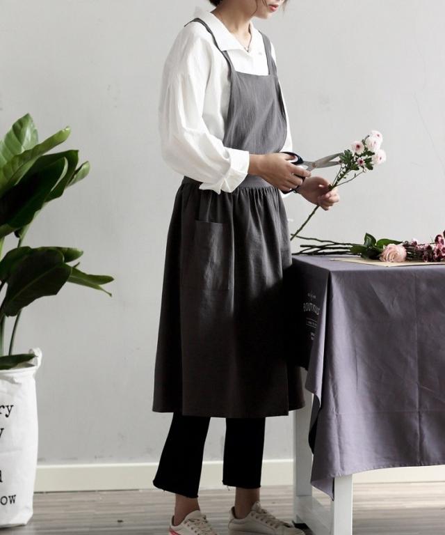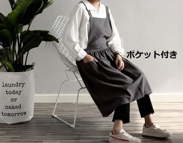 エプロン エプロンワンピース リネンエプロン リネンナチュラル北欧 カフェ ポケット付き 保育士 業務用 ガーデニング キッチン前掛け 料理おしゃれ