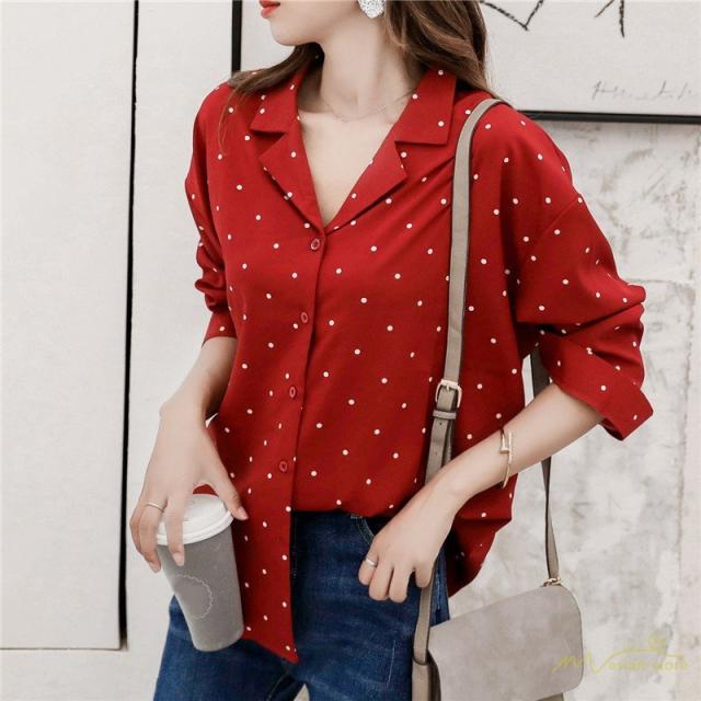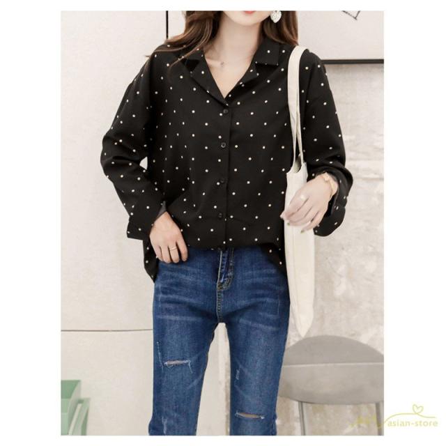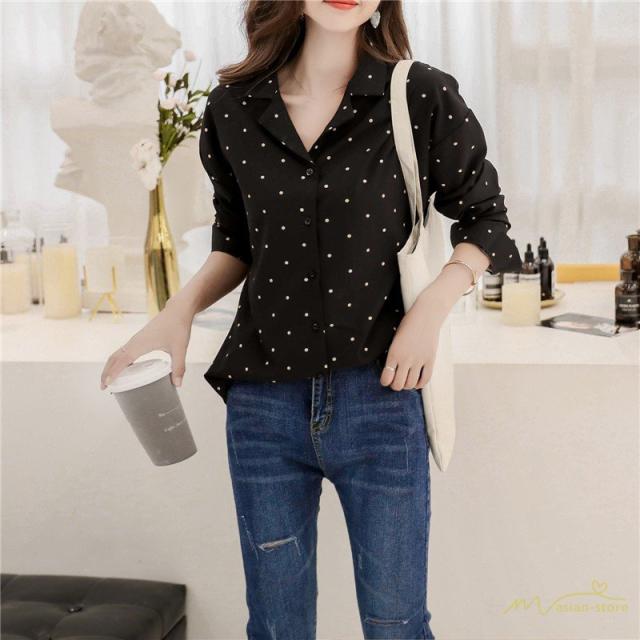 ブラウス シフォンシャツ 長袖 レディースシャツ お呼ばれ ドット柄ブラウス 大きいサイズ 春夏 ゆったり 2色 シフォンブラウス フォーマルシャツ 通勤