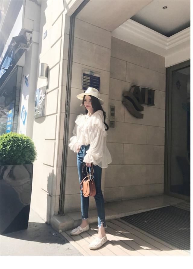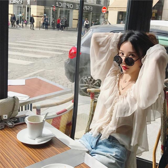 ブラウス レディース 春秋 おしゃれ 長袖 フリル パフスリーブ シフォンブラウス リボンネック 大きいサイズ シャツ トップス 韓国風 通勤 着痩せ 新作