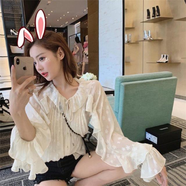 ブラウス レディース 春秋 おしゃれ 長袖 パフスリーブ ドット柄 フリル シフォンブラウス リボンネック 大きいサイズ シャツ トップス 通勤 着痩せ 新作