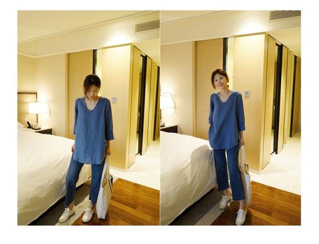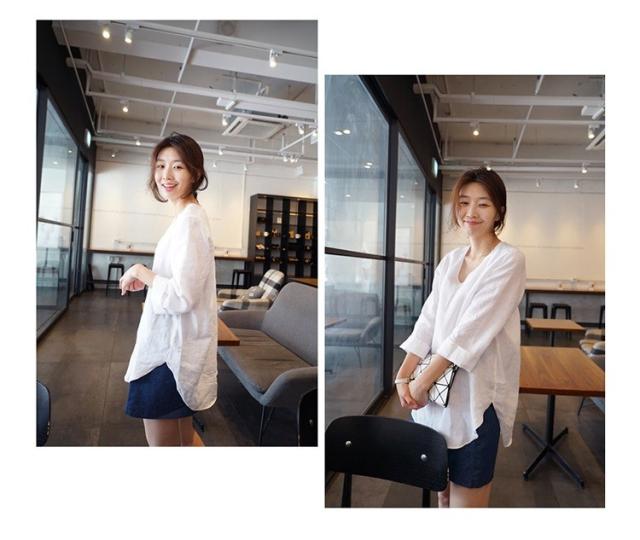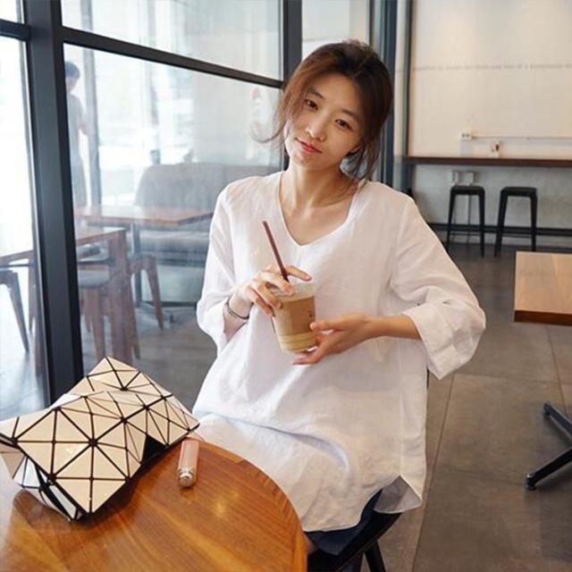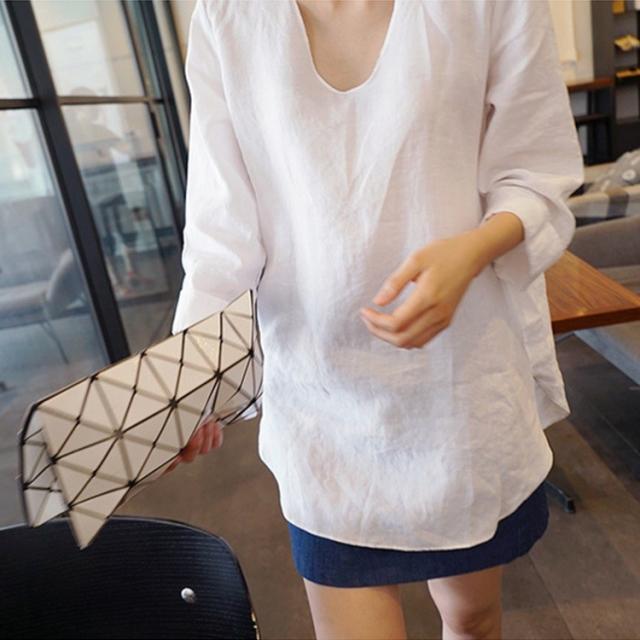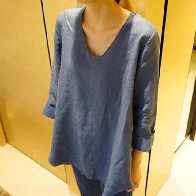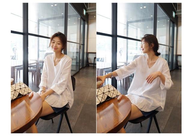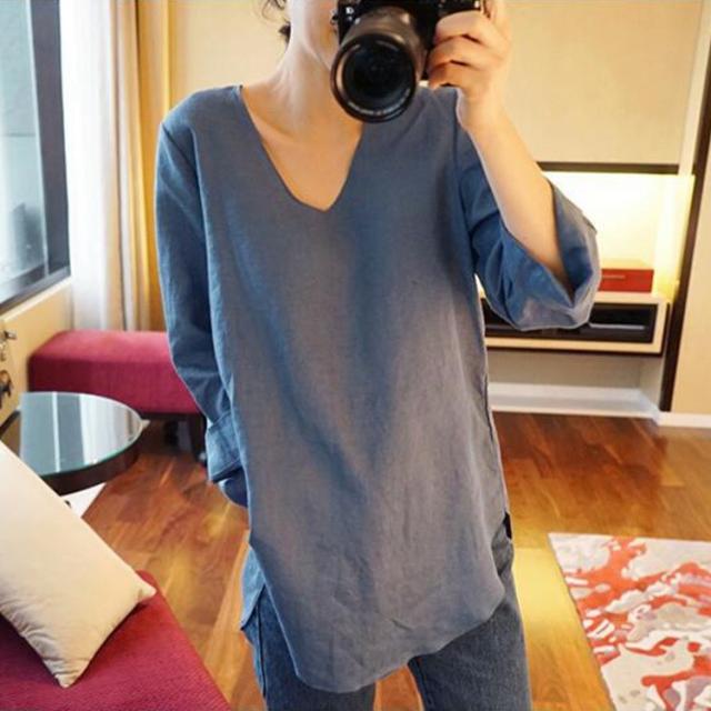 Tシャツ レディース 春夏 40代 綿麻Tシャツ きれいめ Vネック 無地 五分袖 ゆったり カジュアル Tシャツ オフィス 可愛い おしゃれ 韓国風 綿麻 2色