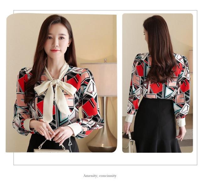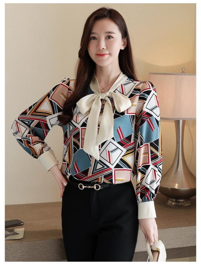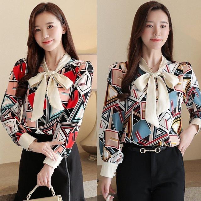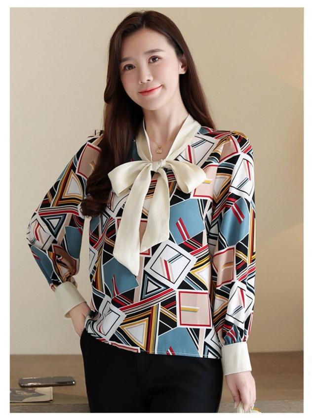 ブラウス レディース 春秋 新作 長袖 カラフル チェック 韓国風 オフィス シフォンブラウス ゆったり きれいめ 蝶結び おしゃれ カジュアル 復古風 2色