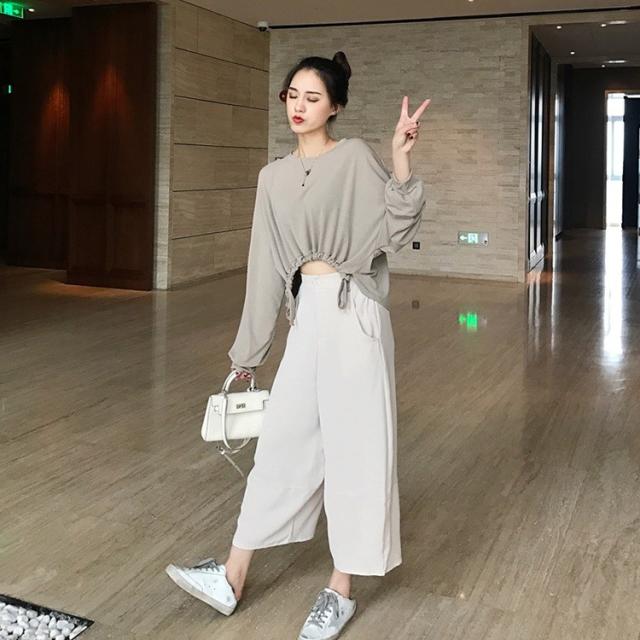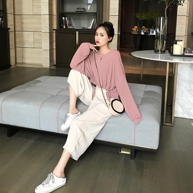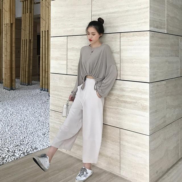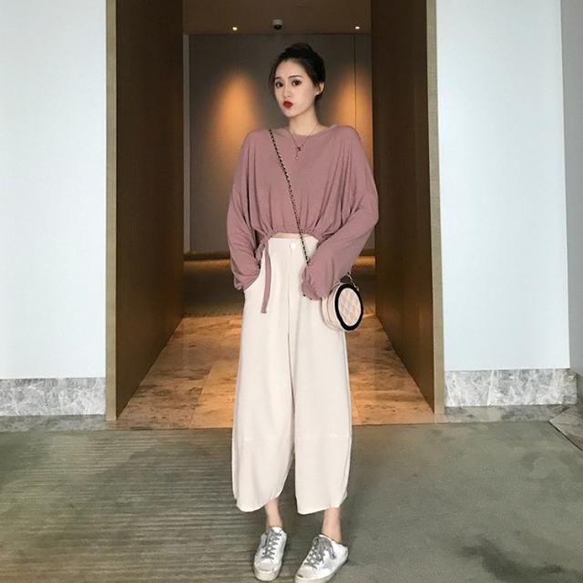 シャツ レディース 春秋 長袖 カジュアルシャツ きれいめ おしゃれ 韓国風 ゆったり 通勤 大きいサイズ 腹出し 2色 七分丈パンツ
