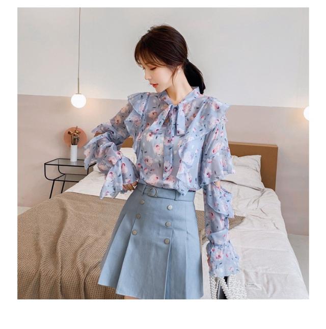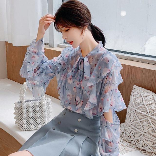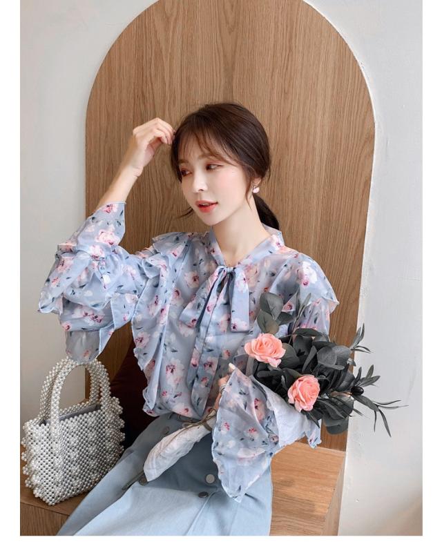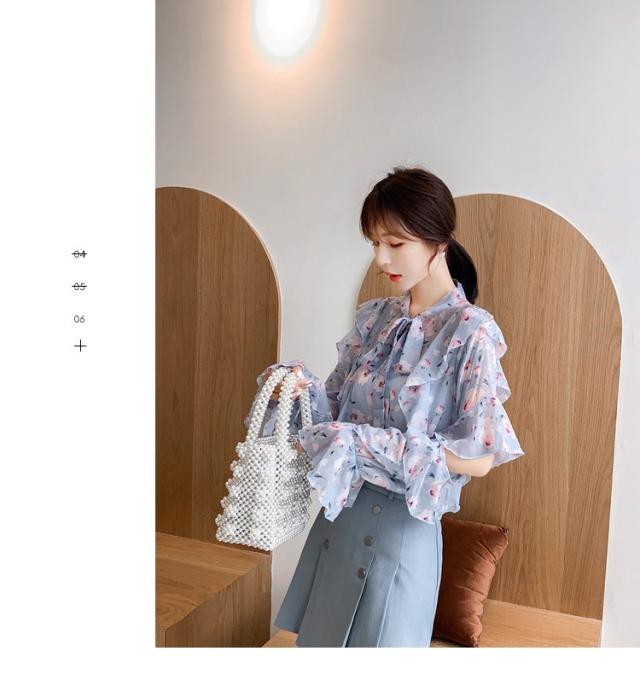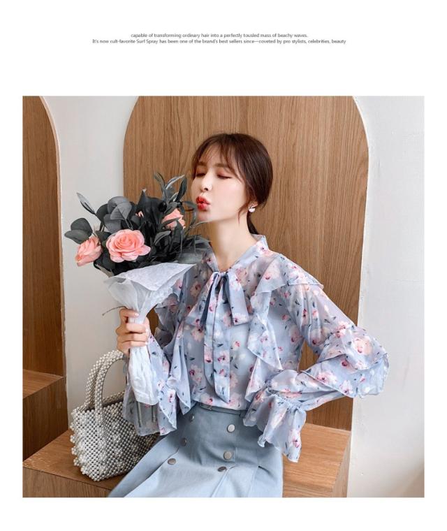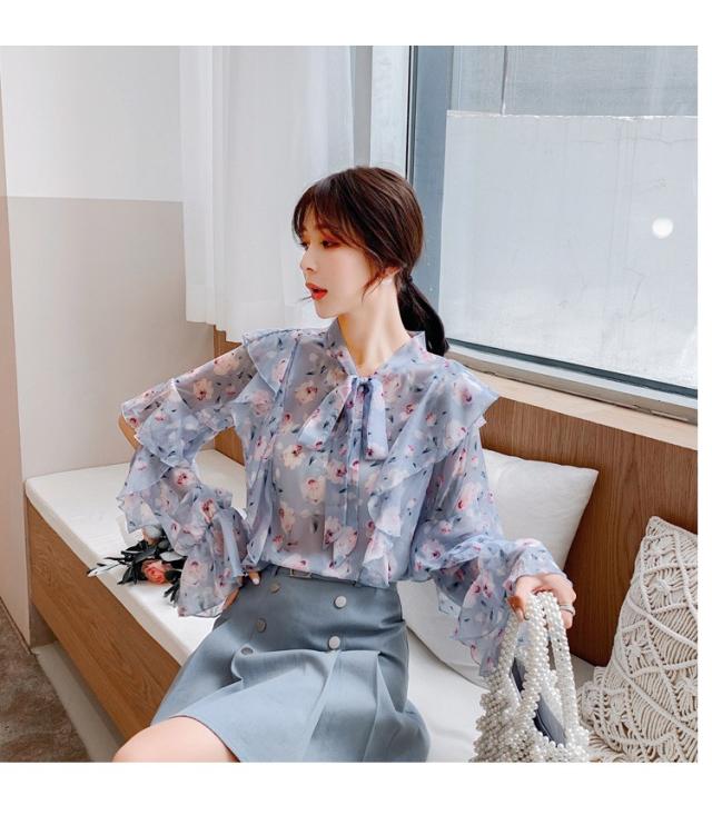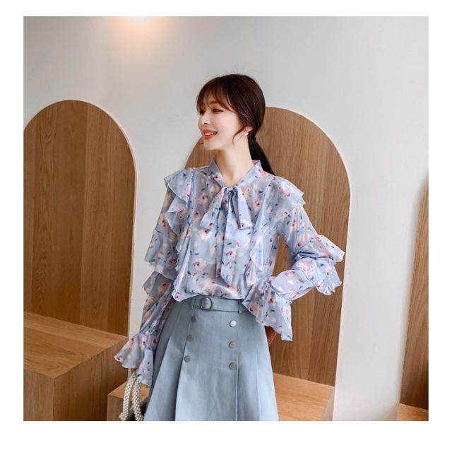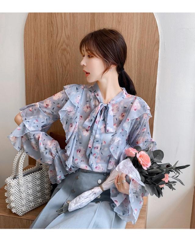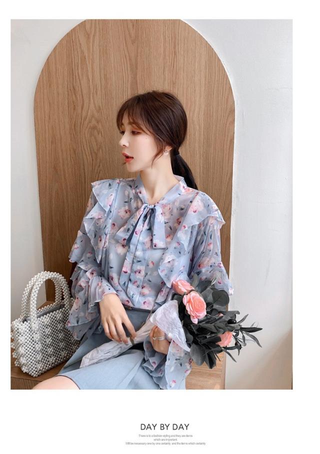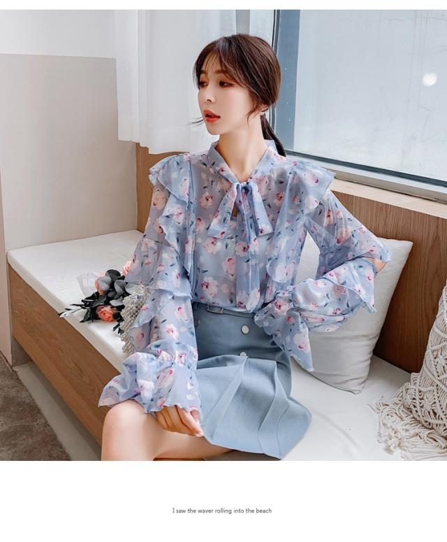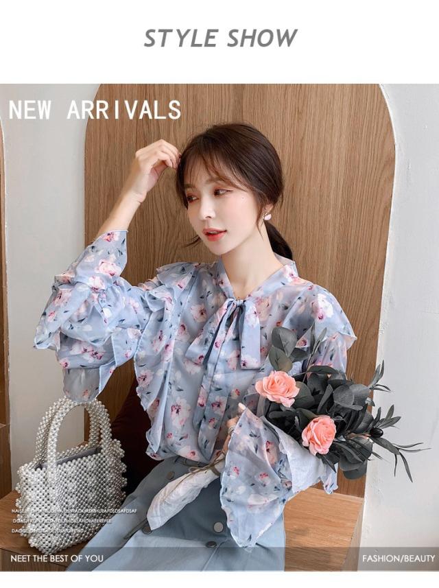 トップスブラウス シャツ レディース 春秋新作 長袖ブラウス 花柄 シフォンブラウス シャツ おしゃれ 韓国風 フォーマル 通勤OL