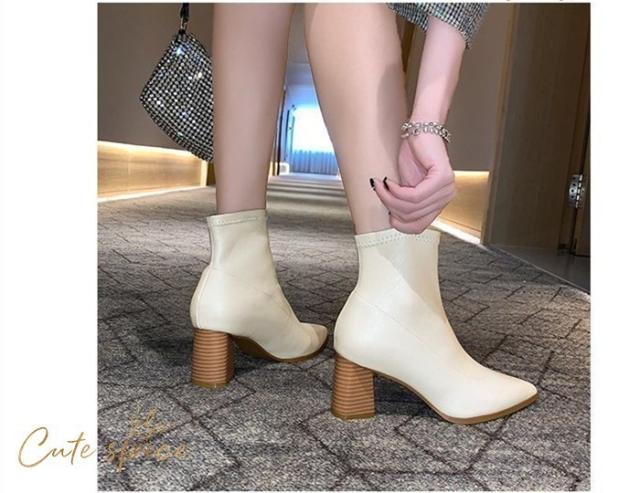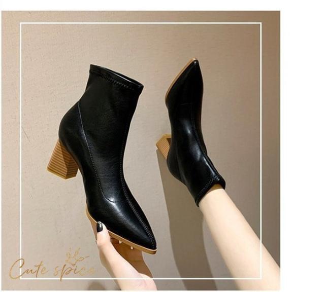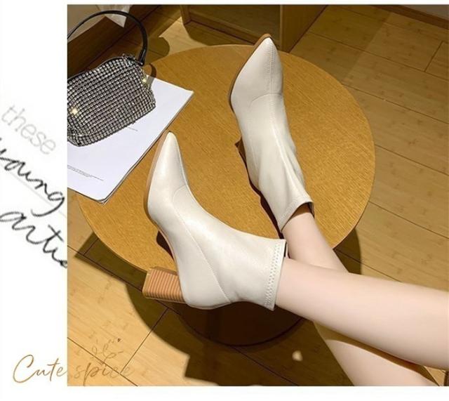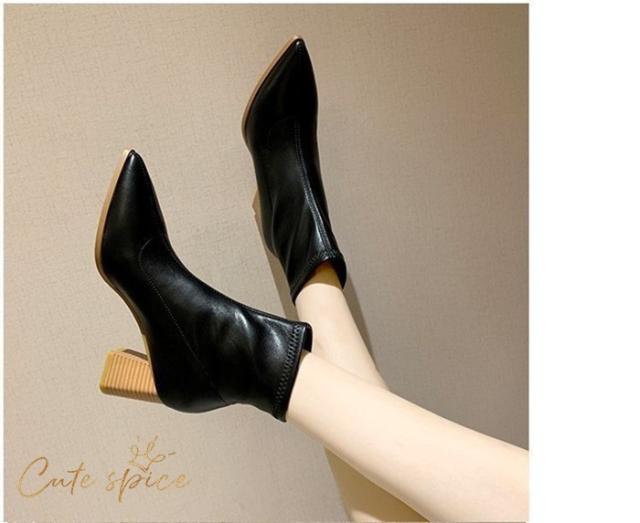 ショートブーツ レディース ミドルブーツ ヒールブーツ シューズ ブーツ PU 大きいサイズ 靴 太めヒール 6.5cm 美脚 歩きやすい 秋 冬 通勤 OL 30代 40代