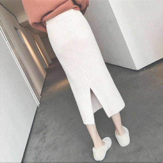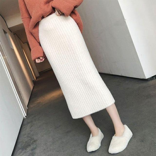 ニットスカート スカート 秋冬 ロングスカート レディース Aライン ハイウエスト 黒 白 柔らか 細身 ボトムス おしゃれ