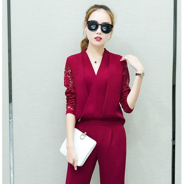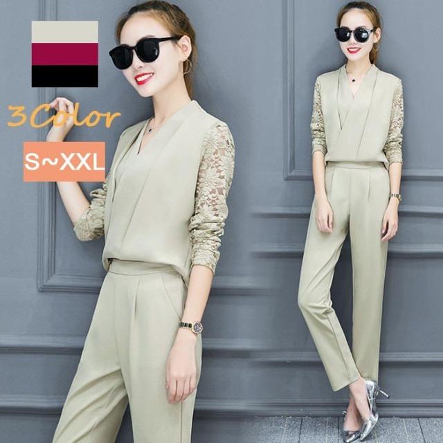 オールインワン Vネック オーバーオール コンビネゾン ジャンプスーツ 3色 レースレディース 結婚式 長袖 サロペットフォーマル 通勤/OL 20代30代40代50代