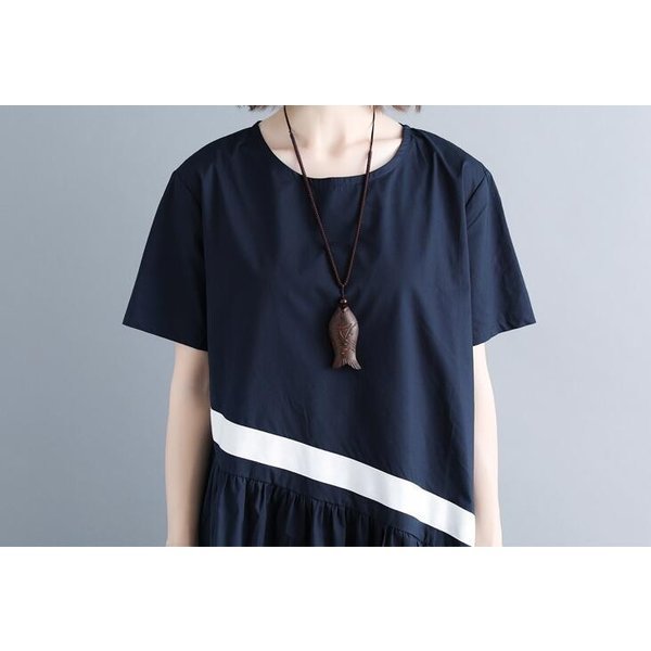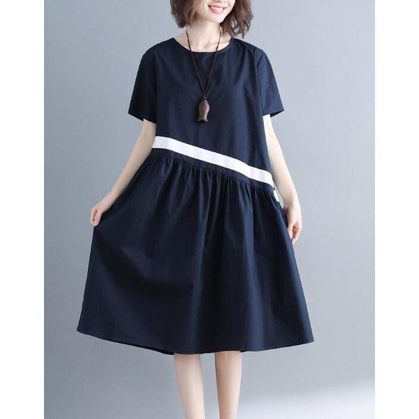 レディース 半袖ワンピース シンプル ナチュラル ゆったりレトロ Aライン 体型カバー 膝下丈ワンピース 大きいサイズ 夏