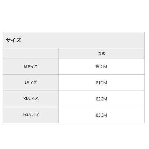 | サイズについての説明 | 【サイズ】Mサイズ 着丈80CM Lサイズ 着丈81CM XLサイズ 着丈82CM 2XLサイズ 着丈83CM 【カラー】レッド、グリーン 【ご注意】:※上記表記は当店平置き実寸サイズになります。※大量生産による生産過程におきまして、若干の個体差が生じる場合がございます。※機械による生産過程におきまして、どうしても生地を織る際の糸の継ぎ目、多少のほつれや汚れなどが生じている場合がございます。※サイトに掲載されている商品は、モニター環境により実際のものと素材感・色が若干異なって見える場合がございます。 |