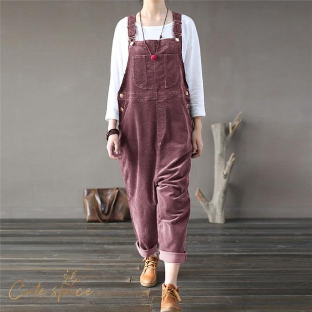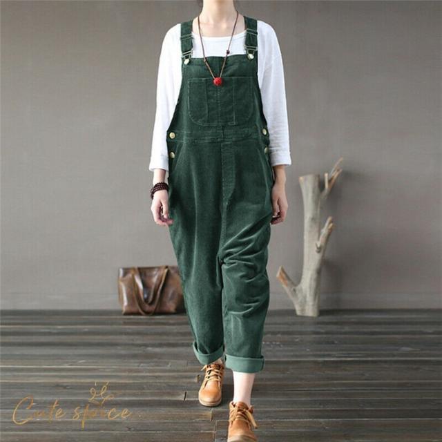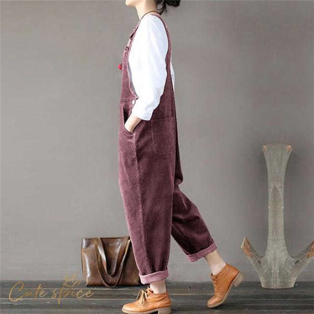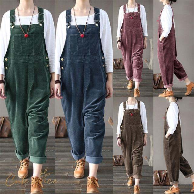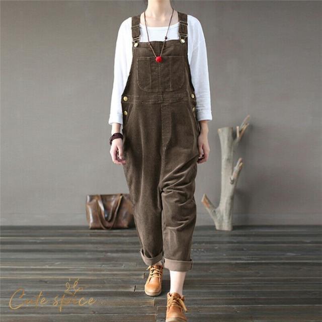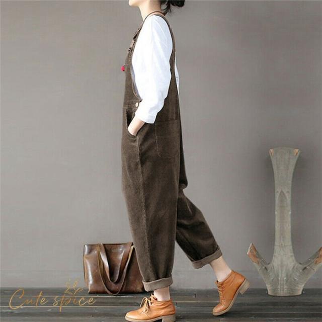 サロペットパンツ サロペット オールインワン レディース コーデュロイ ロングパンツ パンツドレス オーバーオール ワイドパンツ 着痩せ OL 体型カバー 秋 冬