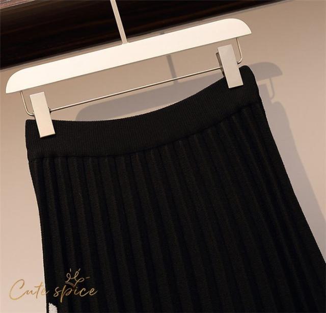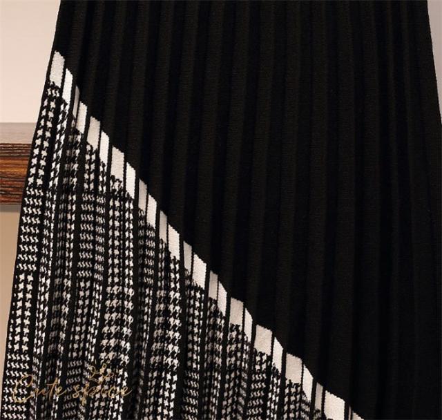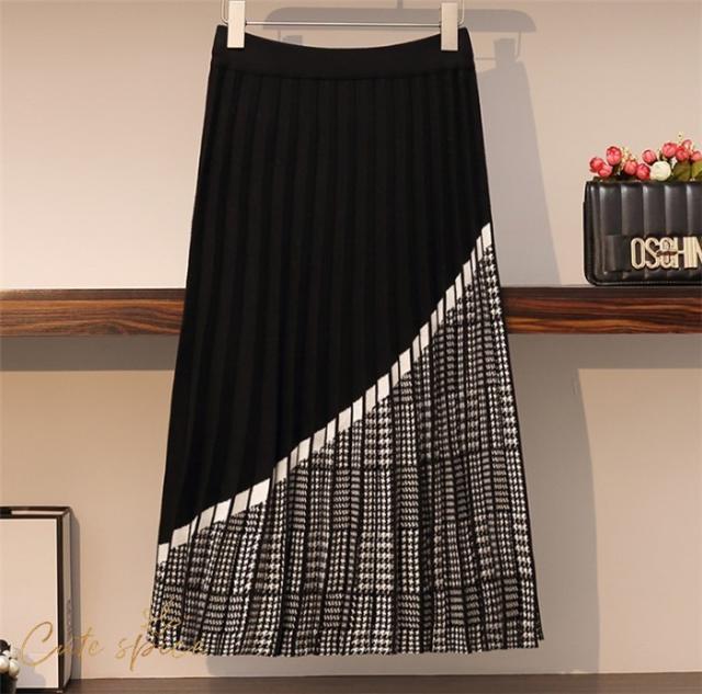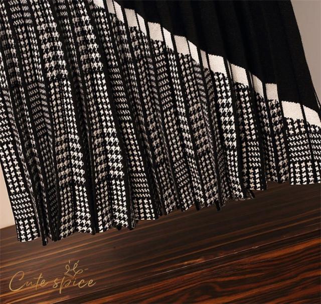 ニットロングスカート aラインスカート プリーツスカート 千鳥柄スカート ボトムス レディース 上品 通勤 オフィス 着痩せ 切り替え 秋 冬 30代 40代 50代
