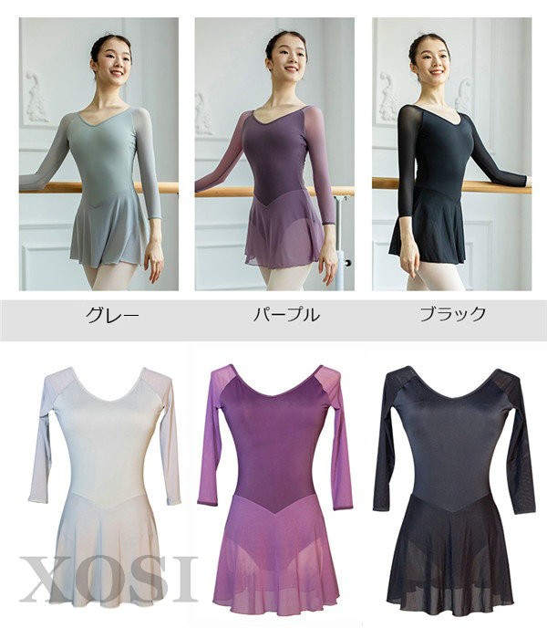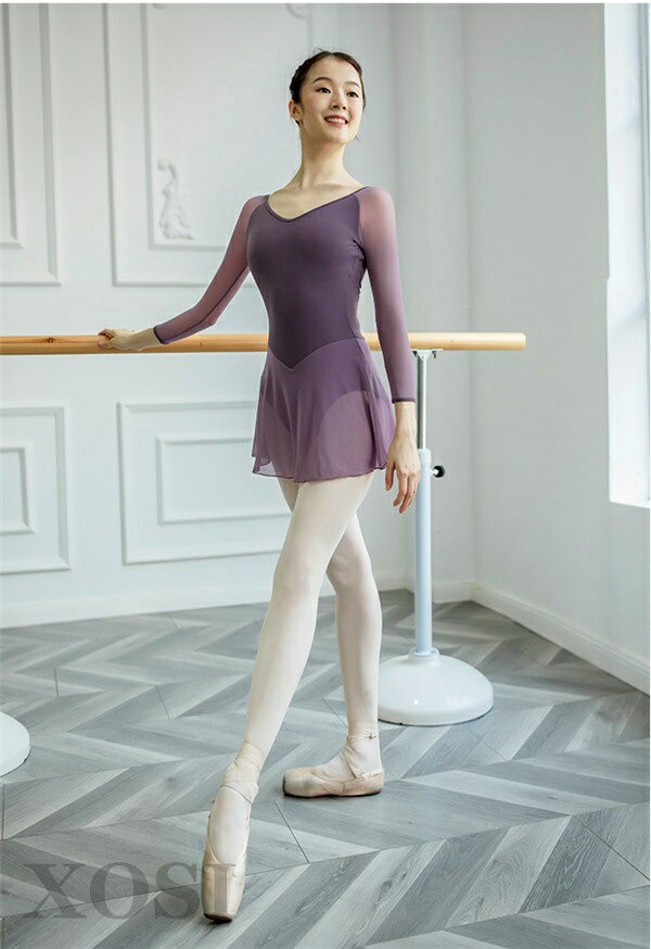 バレエレオタード 大人用 バレエ用レオタード ラウンドネック バレエ衣装 練習衣装 袖あり ダンス レオタード レッスン着 ジュニア S〜XL