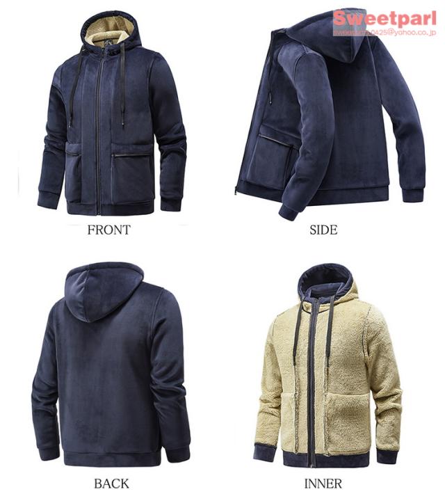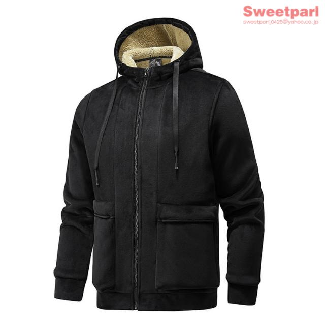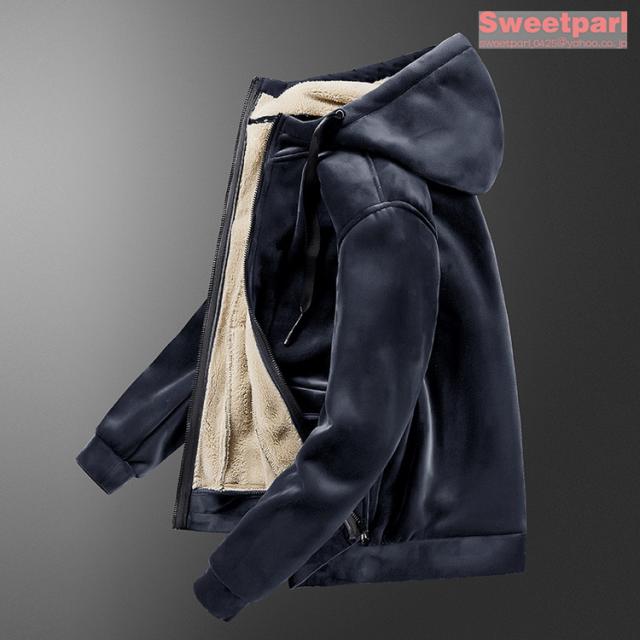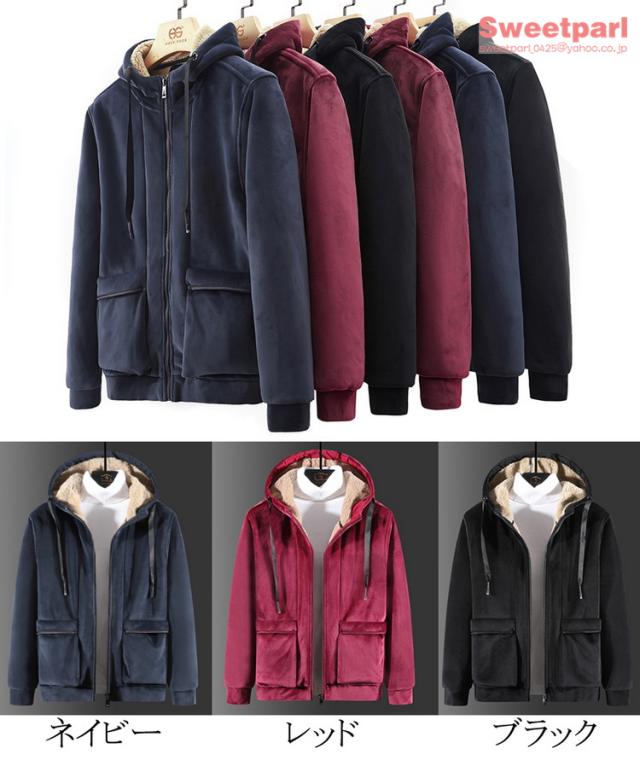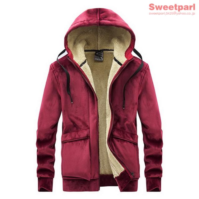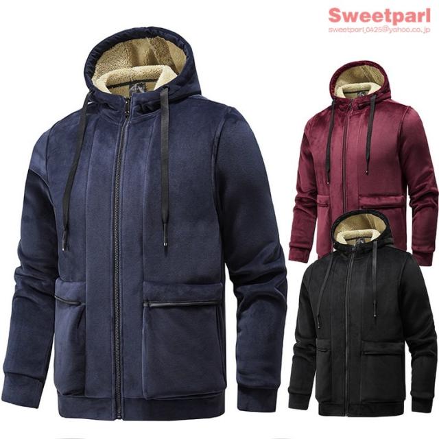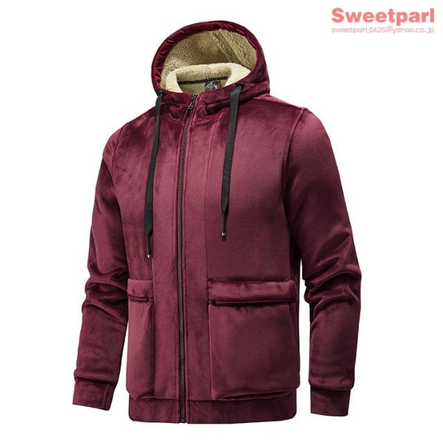 ベロアパーカー メンズ ジップアップパーカー 裏ボア トップス 長袖 大きいサイズ あたたか パーカー 春冬
