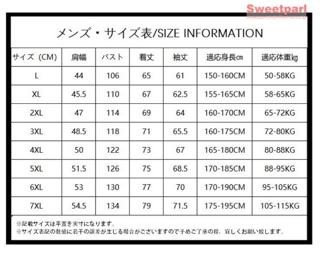| サイズ | L XL 2XL 3XL 4XL 5XL 6XL 7XL |