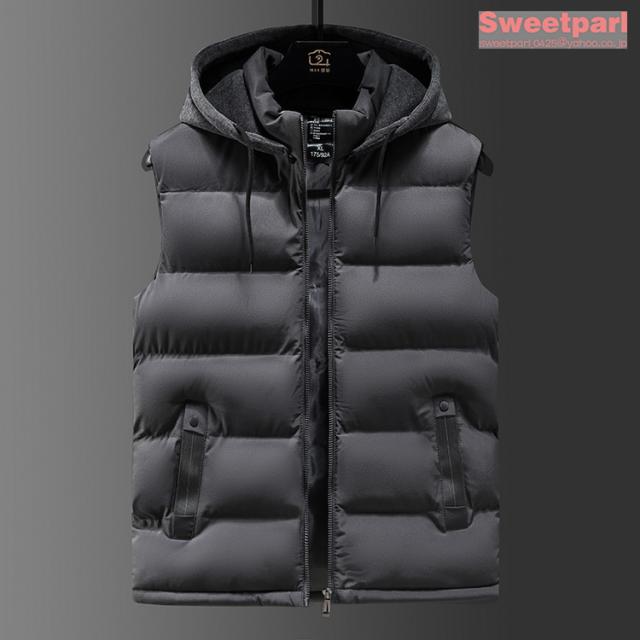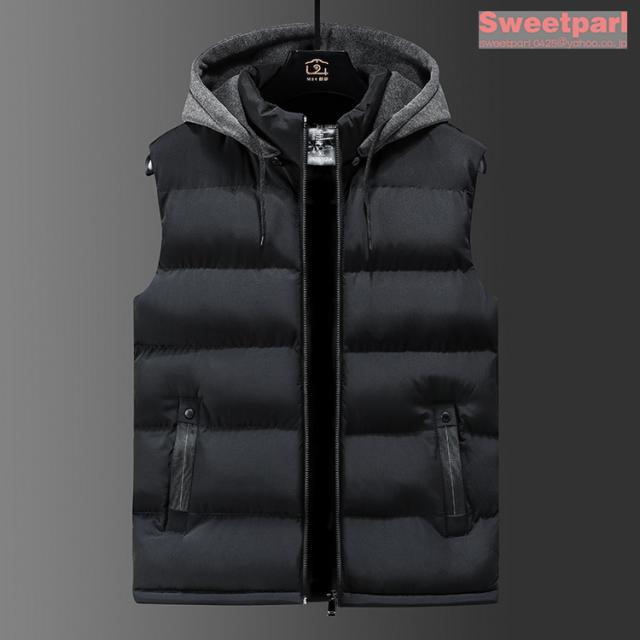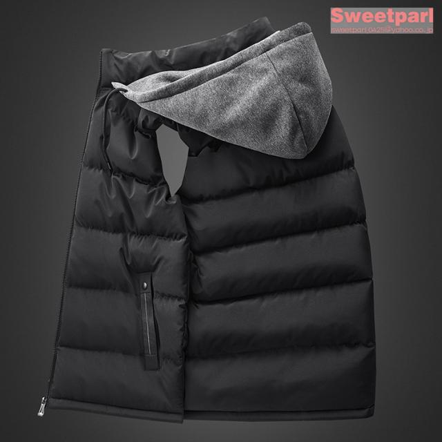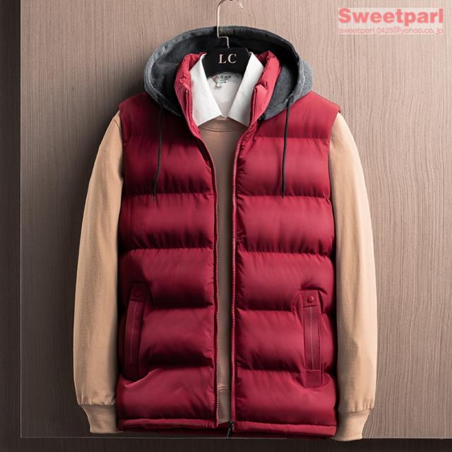 フード付きベスト メンズ 中綿ベスト ライトアウター ベスト コート 中綿入り 春服 冬物 大きいサイズ