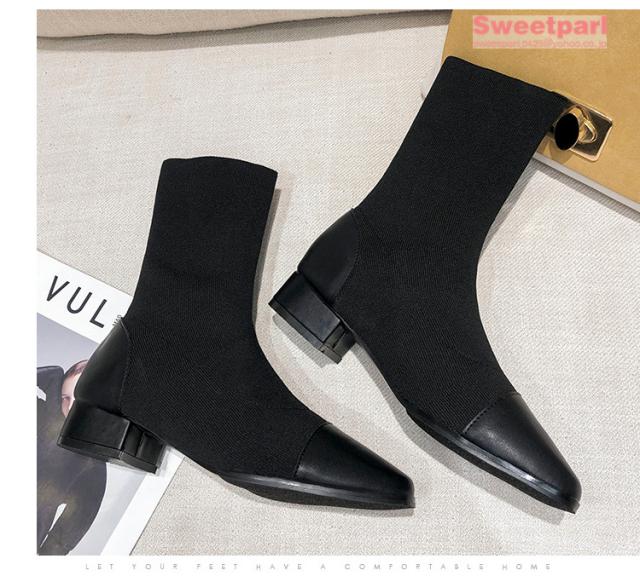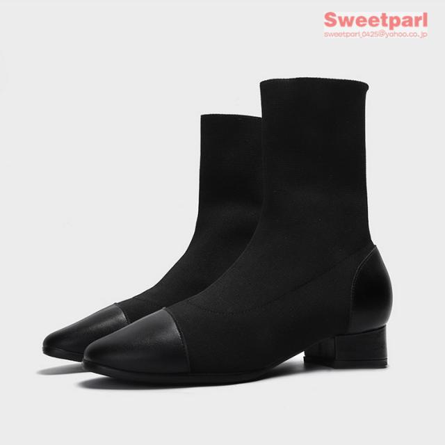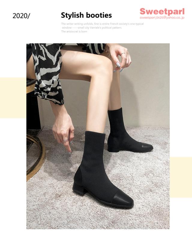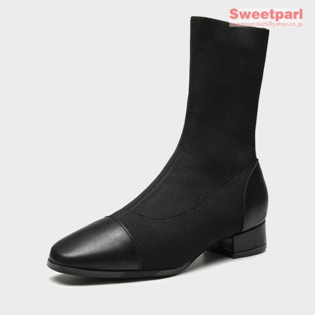 ニットブーツ ソックスブーツ ミドルブーツ ストレッチニット ストレスフリー 春 春 冬 レディース