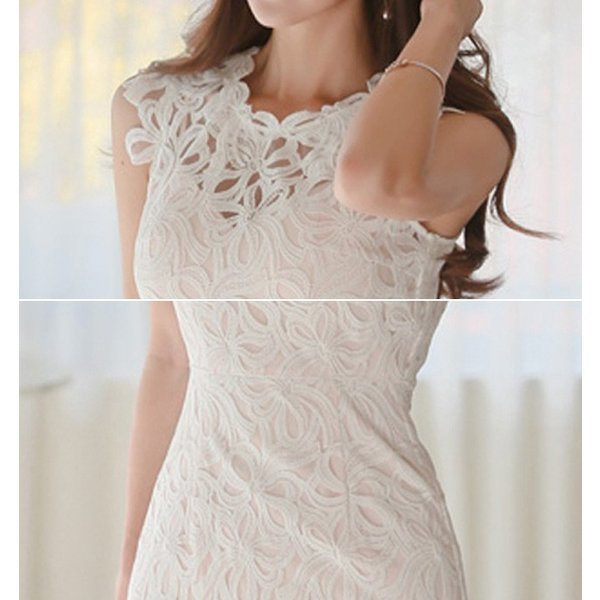 【セール】レースワンピース 膝丈 ノースリーブ レースドレス パーティー 二次会 タイトワンピース スリム 着痩せ 膝丈ワンピース レー