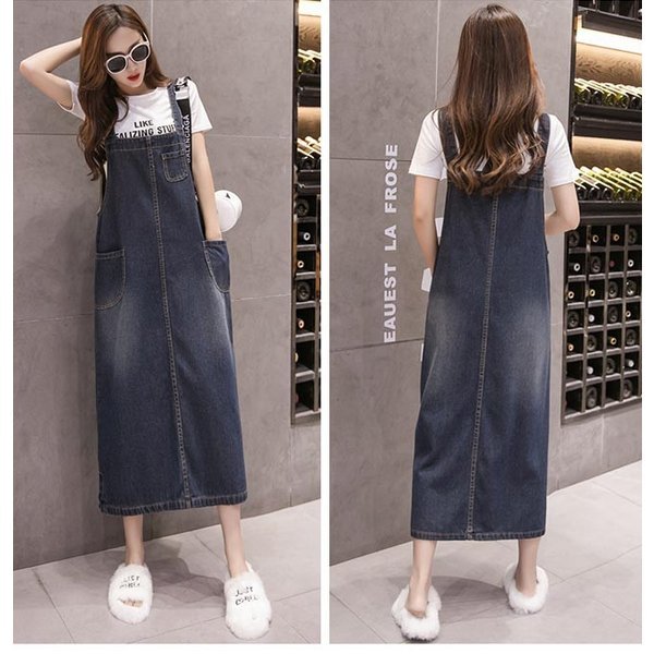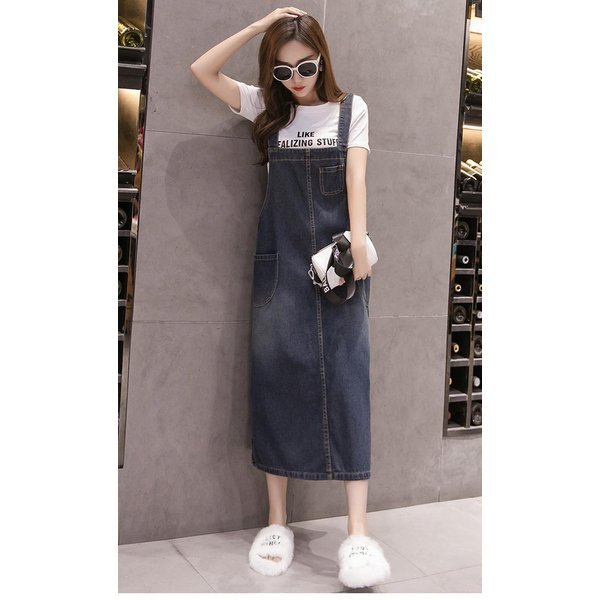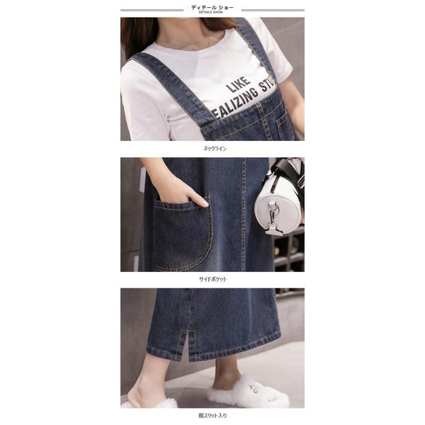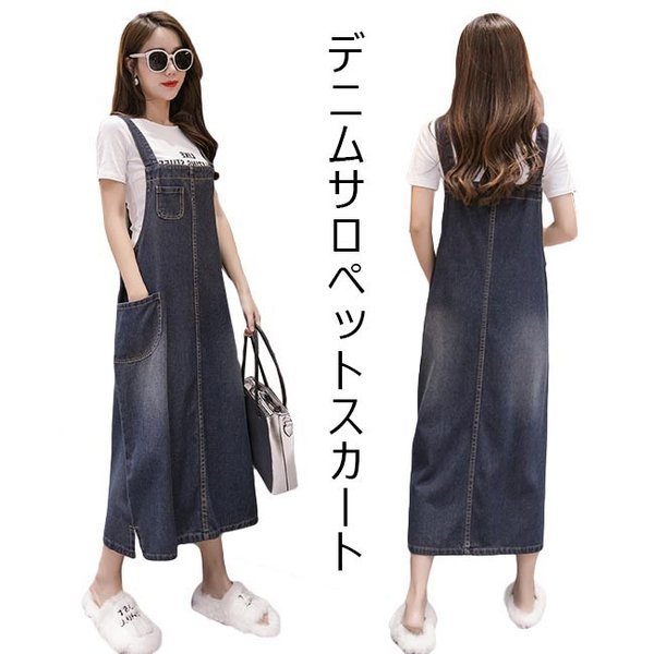 【セール】デニムサロペットスカート レディース 大きいサイズ 体型カバー サスペンダー マキシ丈 重ね着 ジャンパー オールインワン ワン