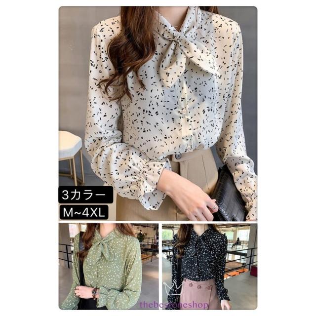 シャツ レディース リボンネック シフォン きれいめ ファッション 上品 通勤 トップス 長袖 大人 オシャレ 小柄 韓国風 通勤 新作 2色 20代 30代 40代