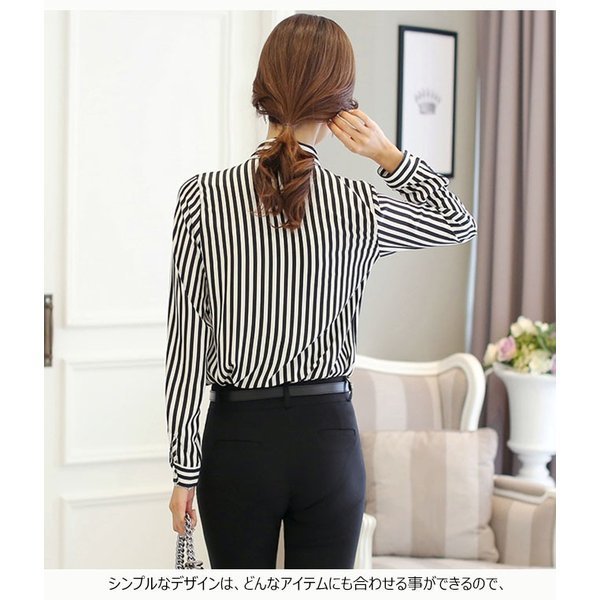 裏起毛 シフォンシャツ シフォンブラウス レディース 暖かい 裏ボア リボン付き トップス インナー オフィス 長袖 ストライブ
