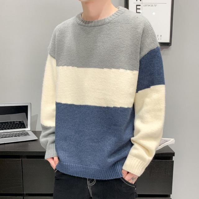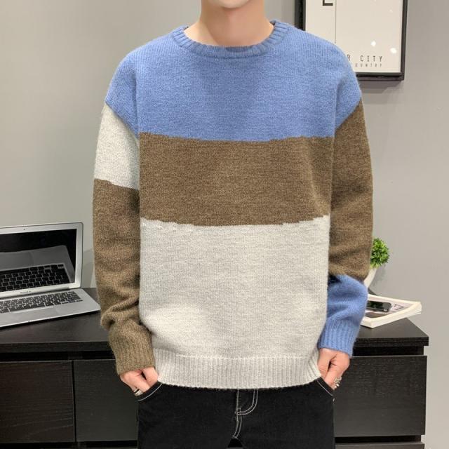 セーター メンズ ニットトップス プルオーバー 配色デザイン 秋 冬 カジュアル ゆったり 保温 温かい スクール風 通学 着心地良い