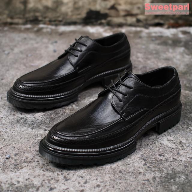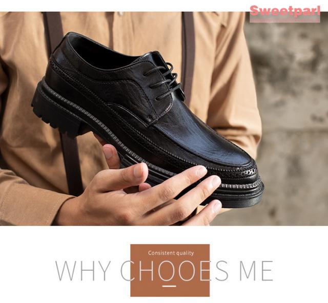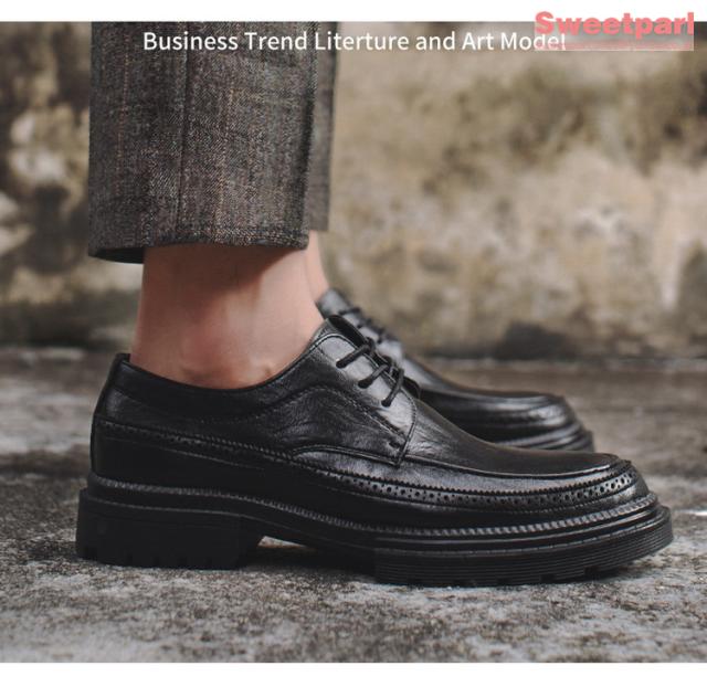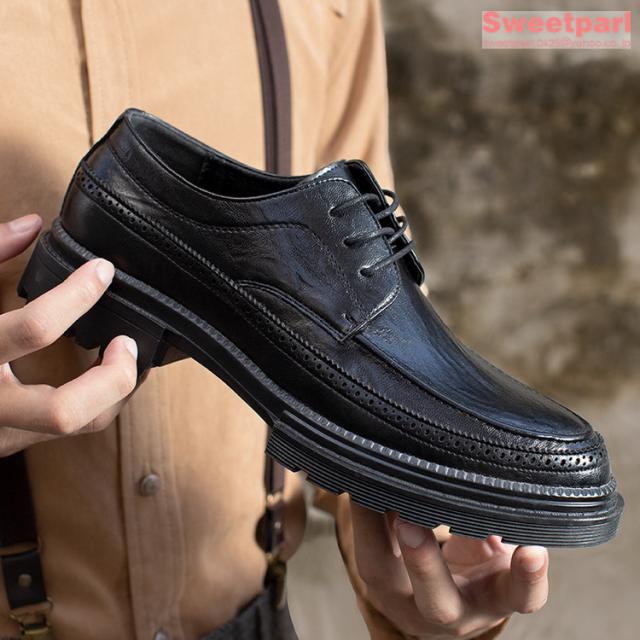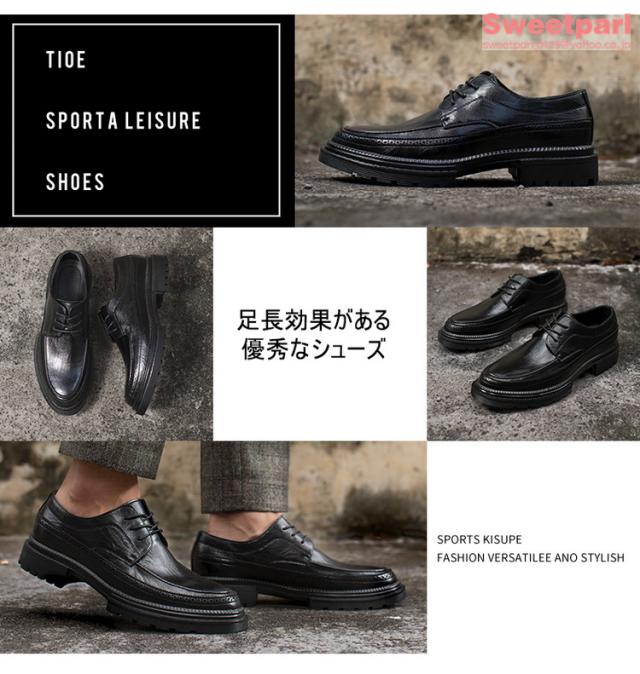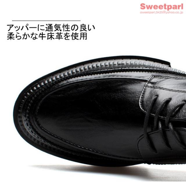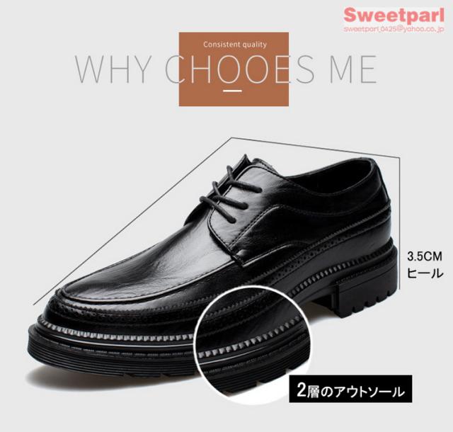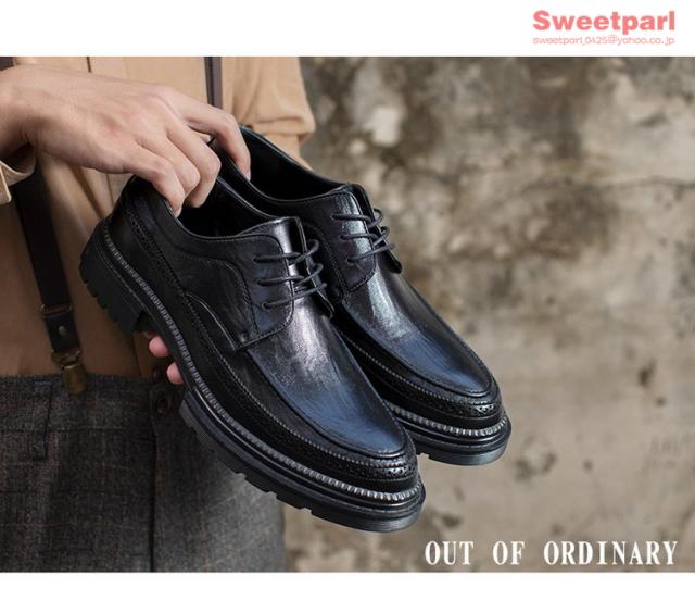 ビジネスシューズ メンズ 厚底 シューズ 牛革 Uチップ 外羽根 革靴 紳士靴 ブラック