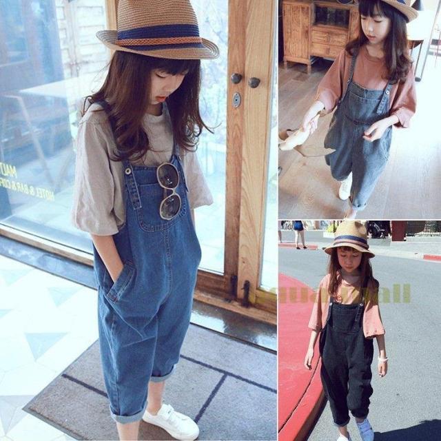 ネイビーパンツ カジュアル デニム ロングパンツ デニムサロペット ベビー ジュニア KIDS 子供服 ジーンズ オールインワン 無地 女の子 韓国服