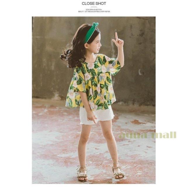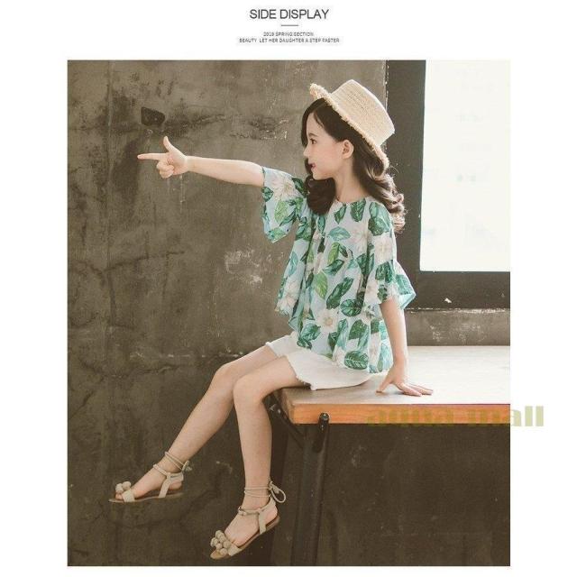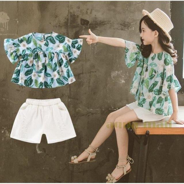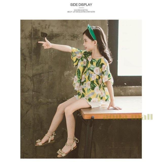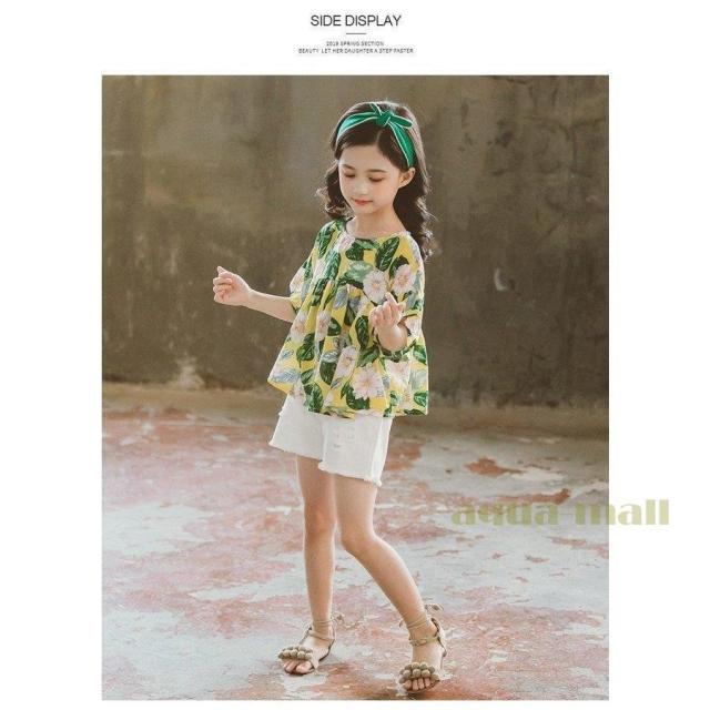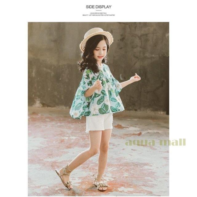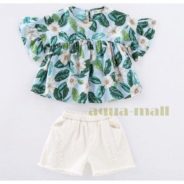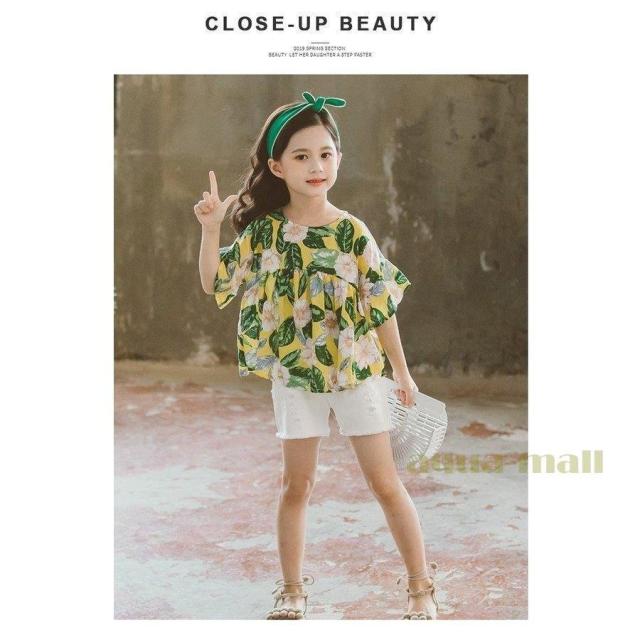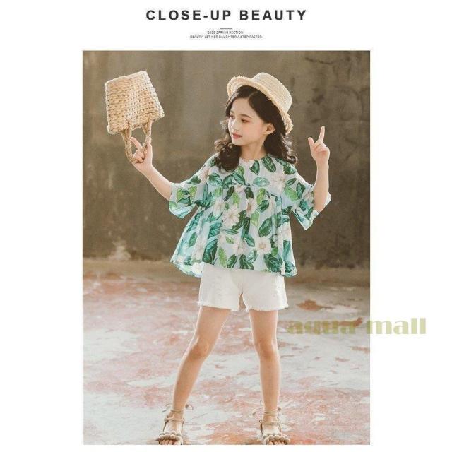 子供服 セットアップ キッズ 女の子 韓国子供服 上下セット 2点セット トップス 半袖 Tシャツ シフォン ショートパンツ 短パン デニム 春夏 通学着 通園着