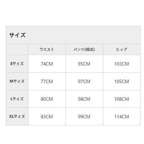 | サイズについての説明 | 【サイズ】Sサイズ ウエスト74CM パンツ(総丈)95CM ヒップ103CM Mサイズ ウエスト77CM パンツ(総丈)97CM ヒップ105CM Lサイズ ウエスト80CM パンツ(総丈)98CM ヒップ108CM XLサイズ ウエスト83CM パンツ(総丈)99CM ヒップ114CM 【カラー】グレー、ベージュ 【ご注意】:※上記表記は当店平置き実寸サイズになります。※大量生産による生産過程におきまして、若干の個体差が生じる場合がございます。※機械による生産過程におきまして、どうしても生地を織る際の糸の継ぎ目、多少のほつれや汚れなどが生じている場合がございます。※サイトに掲載されている商品は、モニター環境により実際のものと素材感・色が若干異なって見える場合がございます。 |
