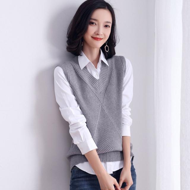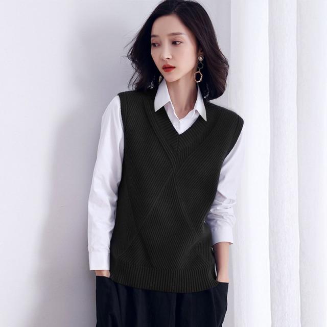 ニットベスト レディース ベスト Vネック トップス ニットセーター プルオーバー ノースリーブ 無地 通勤 通学 おしゃれ 合わせやすい
