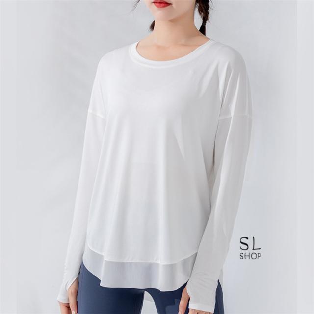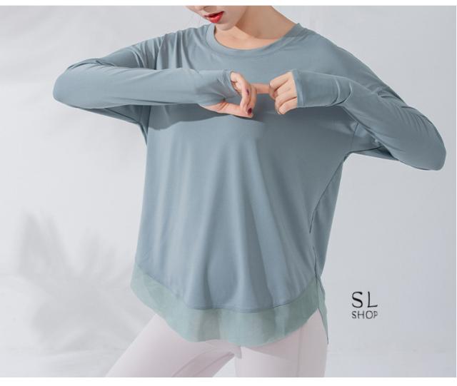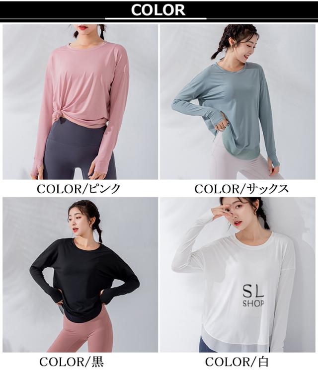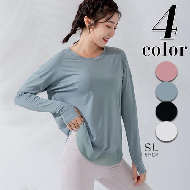 Tシャツ レディース 長袖 ヨガウェア ダンス トレーニング スポーツウェア ジョギング 速乾性 ゆったり ジム