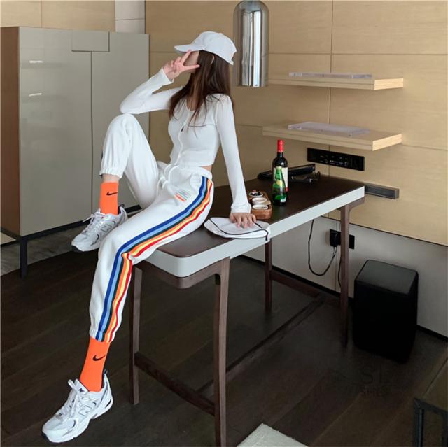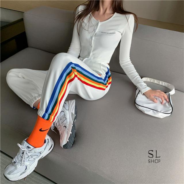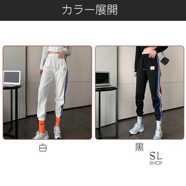 パンツ レディース ジャージパンツ ラインパンツ テーパードパンツ ウエストゴム 9分丈 リブ裾 おしゃれ 2021春