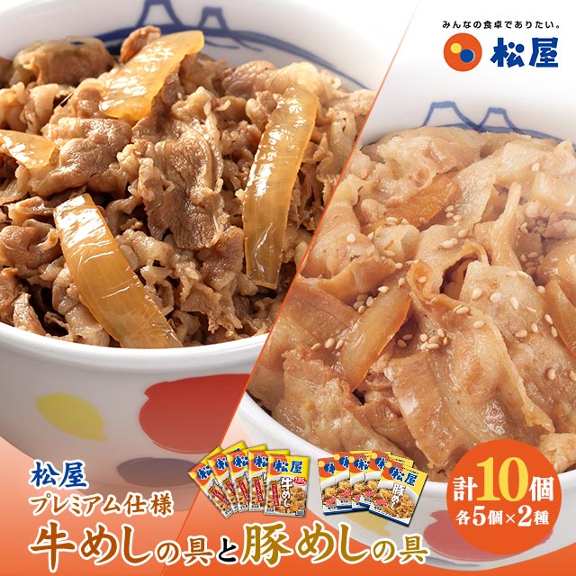 送料込み 松屋 牛めしの具(プレミアム仕様)5個と豚めしの具5個 牛めし 豚めし 冷凍 総菜 冷凍食品 牛丼 豚丼 アソート 食べ比べ