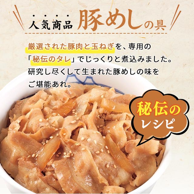 豚めしの具:豚肉(デンマーク産)、たまねぎ、醤油(小麦・大豆を含む)、白ワイン、砂糖、生姜エキス、食塩、たまねぎエキス調味料、ねぎエキス、酵母エキス、植物たん白加水分解物(小麦を含む)/酒精、着色料(カラメルI)、香辛料抽出分、pH調整剤アレルギー特定原材料 牛めしの具(プレミアム仕様):小麦