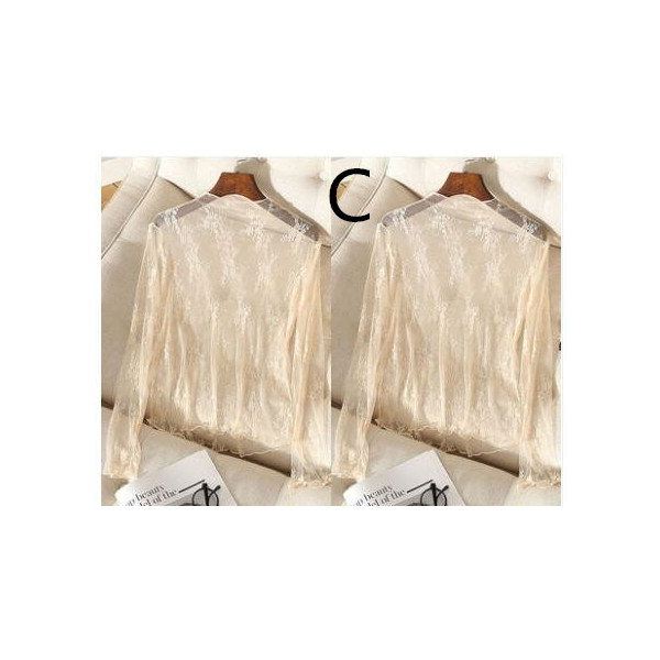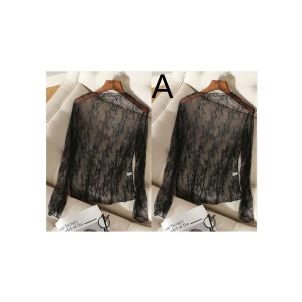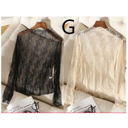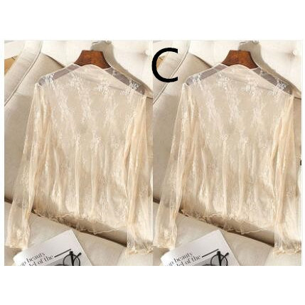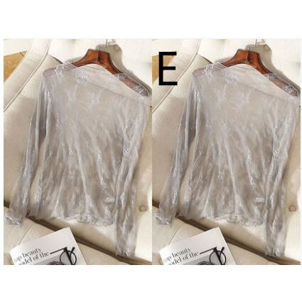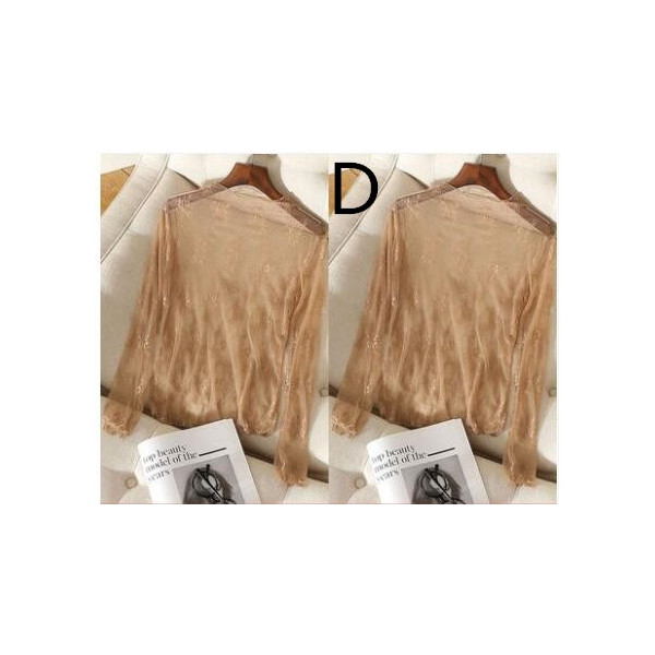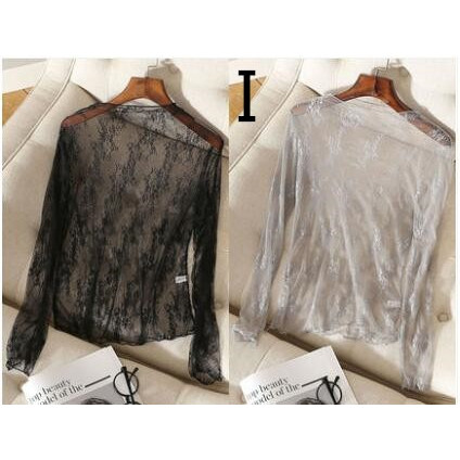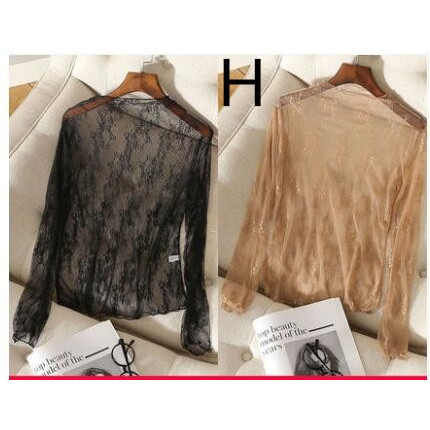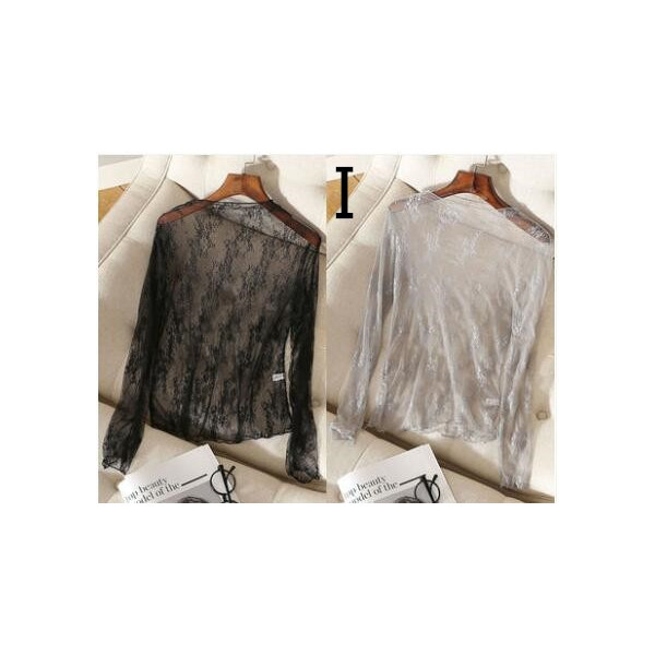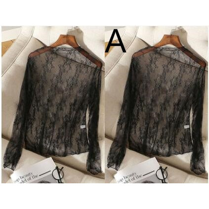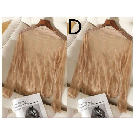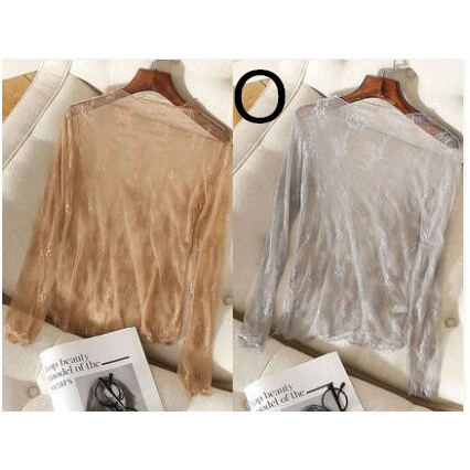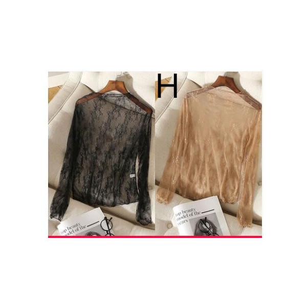 2点セット 秋新作 シースルーレーストップス インナー コーデ 透かしブラウス レース レースカットソー ハイネック レースブラウス