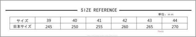 | サイズについての説明 | サイズ 39(24.5cm) 40(25.0cm) 41(25.5cm) 42(26.0cm) 43(26.5cm) 44(27.0cm)※サイズはロット生産である為、1~3cmの誤差が生じる場合がございます。 |