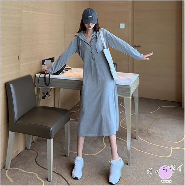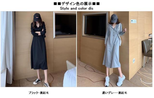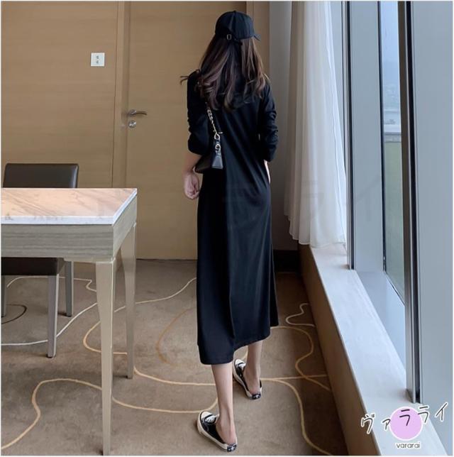 フレンチ風 裏起毛 着痩せ おしゃれ vネック 長袖 気質アップ 保温 通勤 OL 暖かい 春秋 冬 ワンピース シンプル 無地 ロング丈