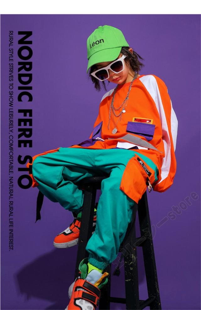 キッズダンス衣装 ヒップホップ 派手 ダンス衣装 セットアップ ガールズ パーカー パンツ キッズ ダンス 衣装 子供 韓国風