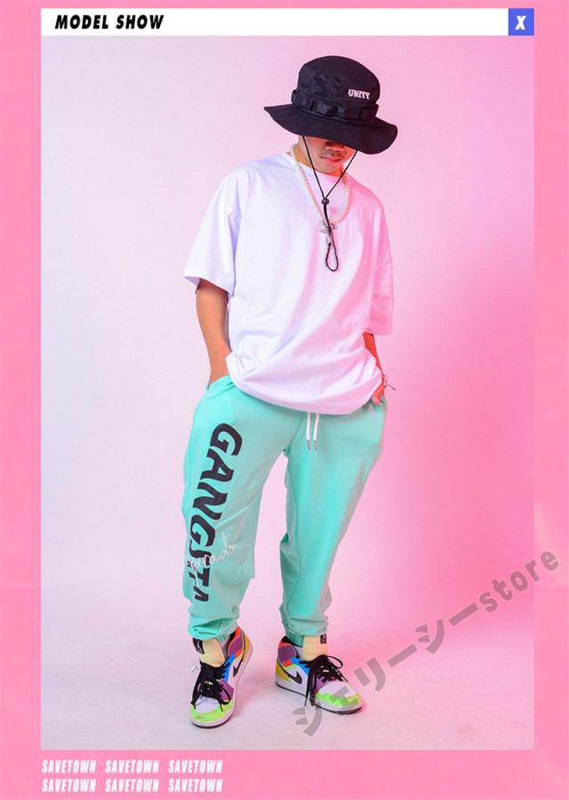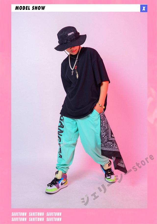 キッズダンス衣装 ヒップホップ ホワイト ブラック 水色 ロングパンツ 半袖 舞台服 セットアップ トップス 発表会 男の子 女の子 ジャッズダンス衣装
