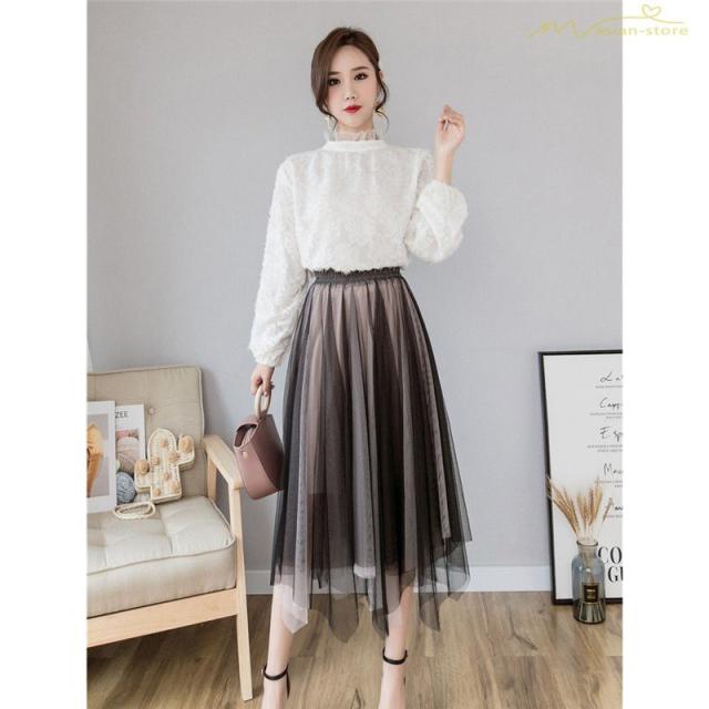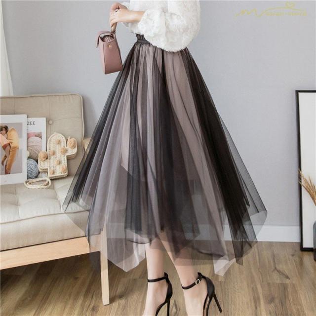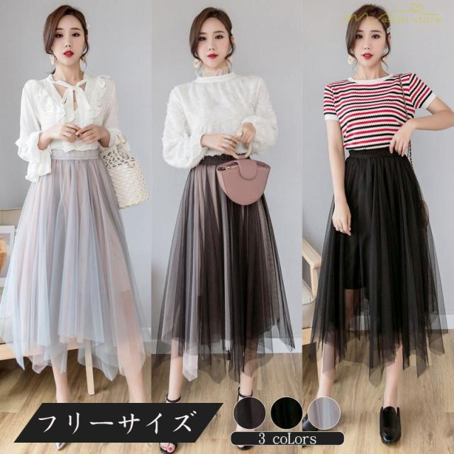 スカート パウスカート チュールスカート 裏地付き ピンタック 透け感 ウエストゴム 細身ビジネス 無地 スタイリッシュ Aライン 2020新制作 カジュアル