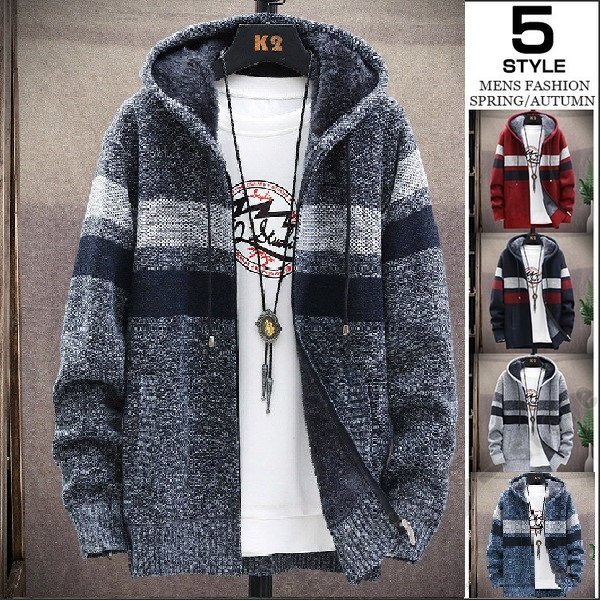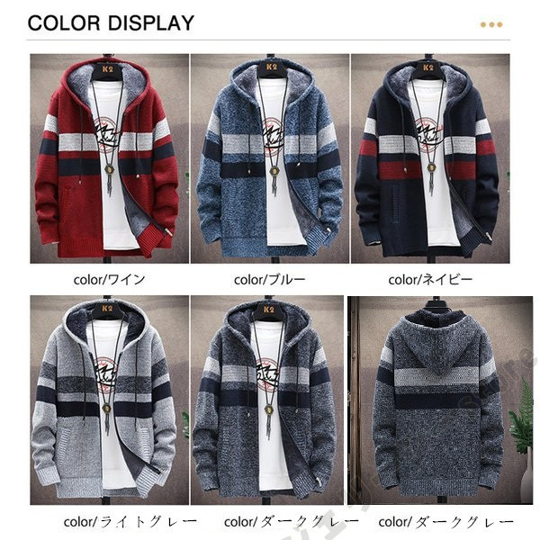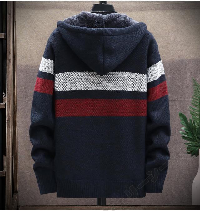 カーディガン メンズ フード付きニット ニットジャケット 裏ボア 暖かい アウター ニットカーディガン 厚手 保温